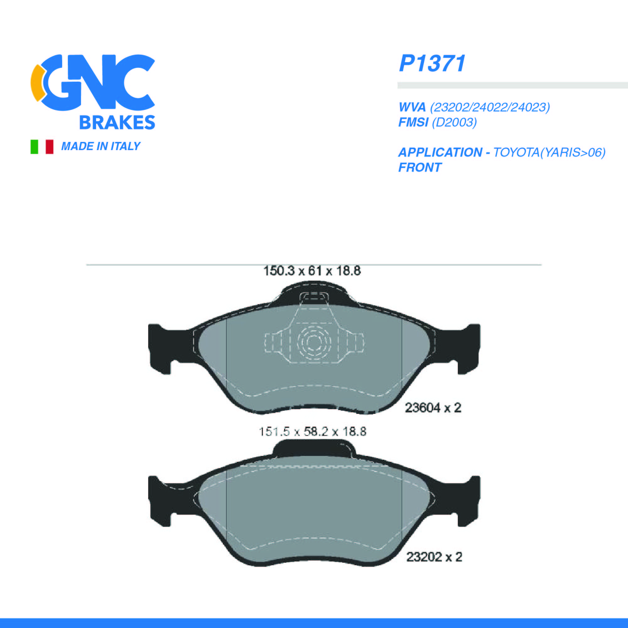 GNC PAD| P1371 TOYOTA(YARIS>06) FRT