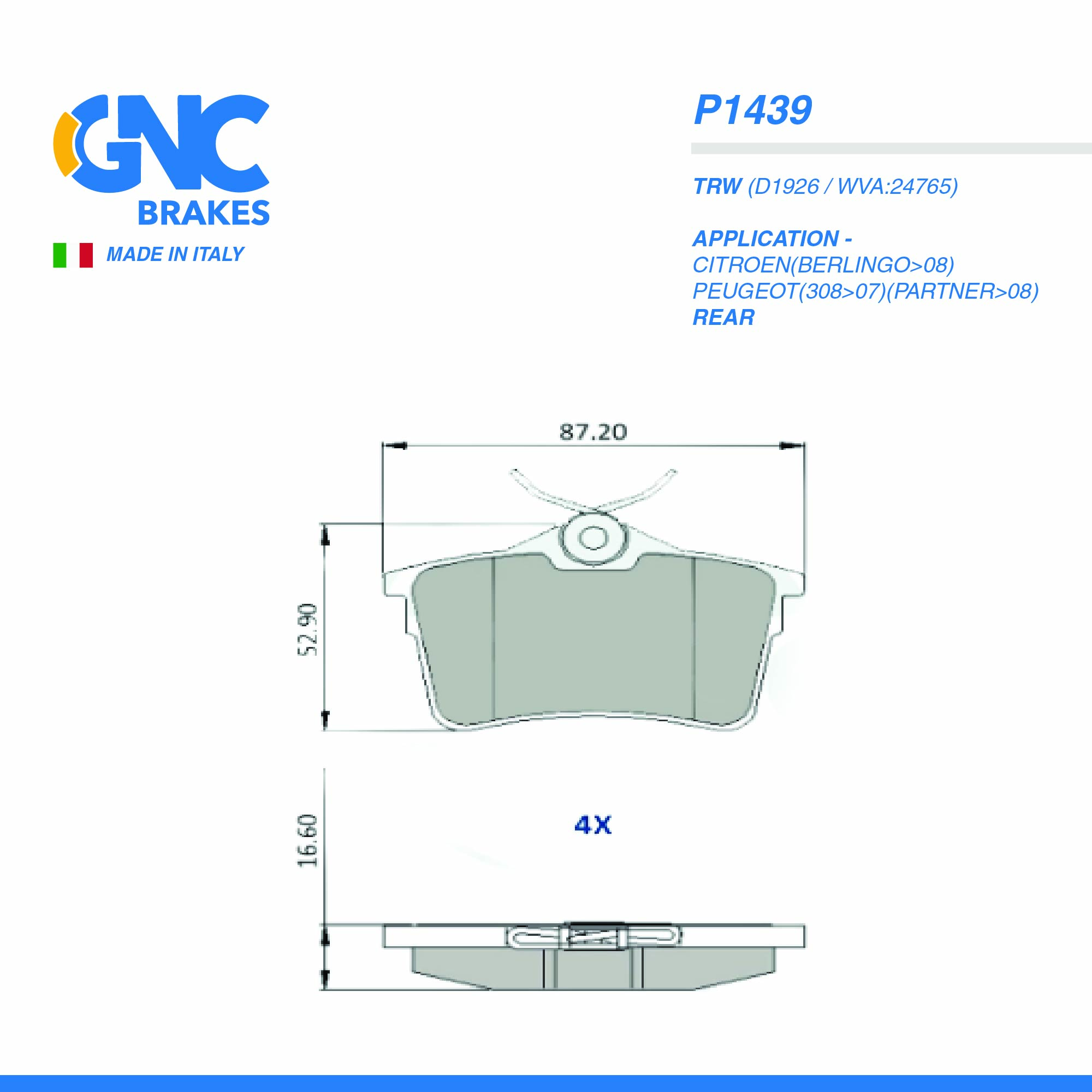 GNC PAD| P1439 CITROEN(BERLINGO>08)PEUGEOT(308>07)(PARTNER>08) RR
