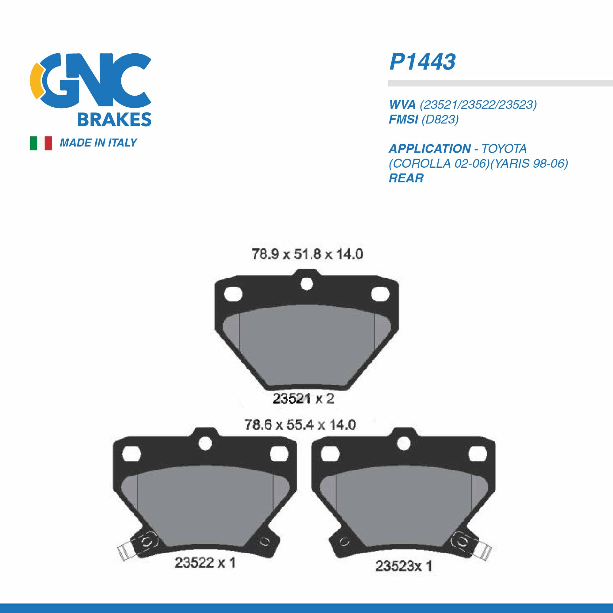 GNC PAD| P1443 TOYOTA(COROLLA 02-06)(YARIS 98-06) RR