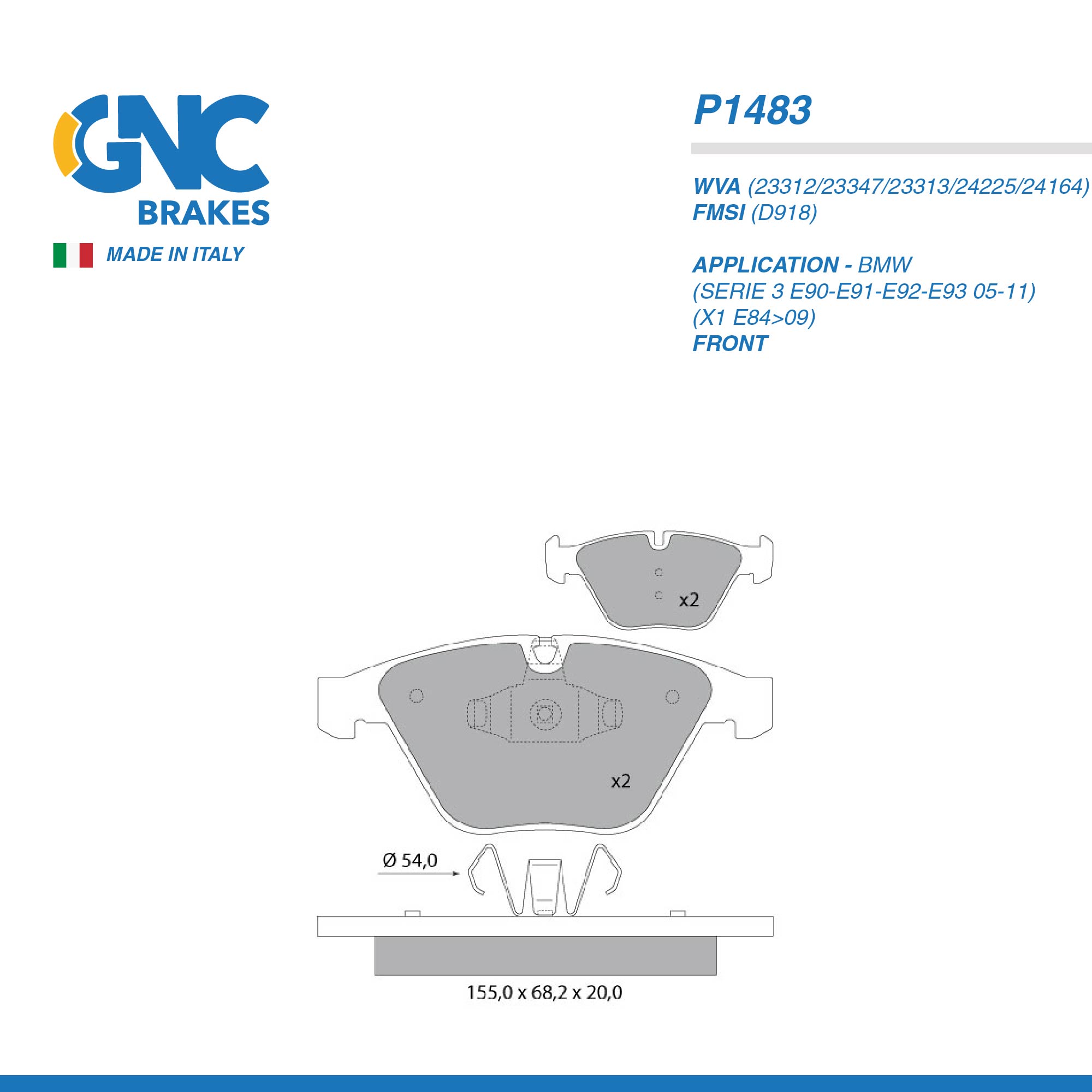 GNC PAD| P1483 BMW(SERIE 3 E90-E91-E92-E93 05-11)(X1 E84>09) FRT