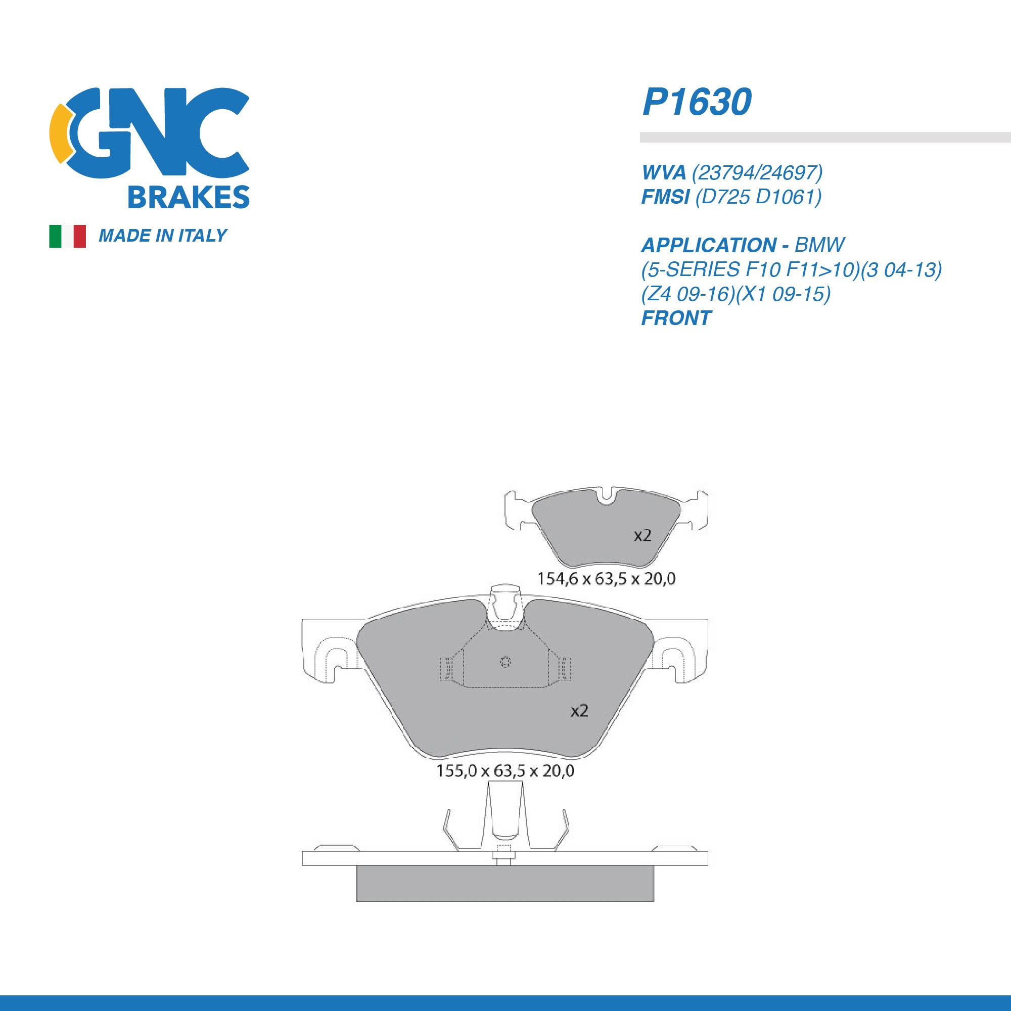 GNC PAD| P1630 BMW(5-SERIES F10 F11>10)(3 04-13)(Z4 09-16)(X1 09-15) FRT