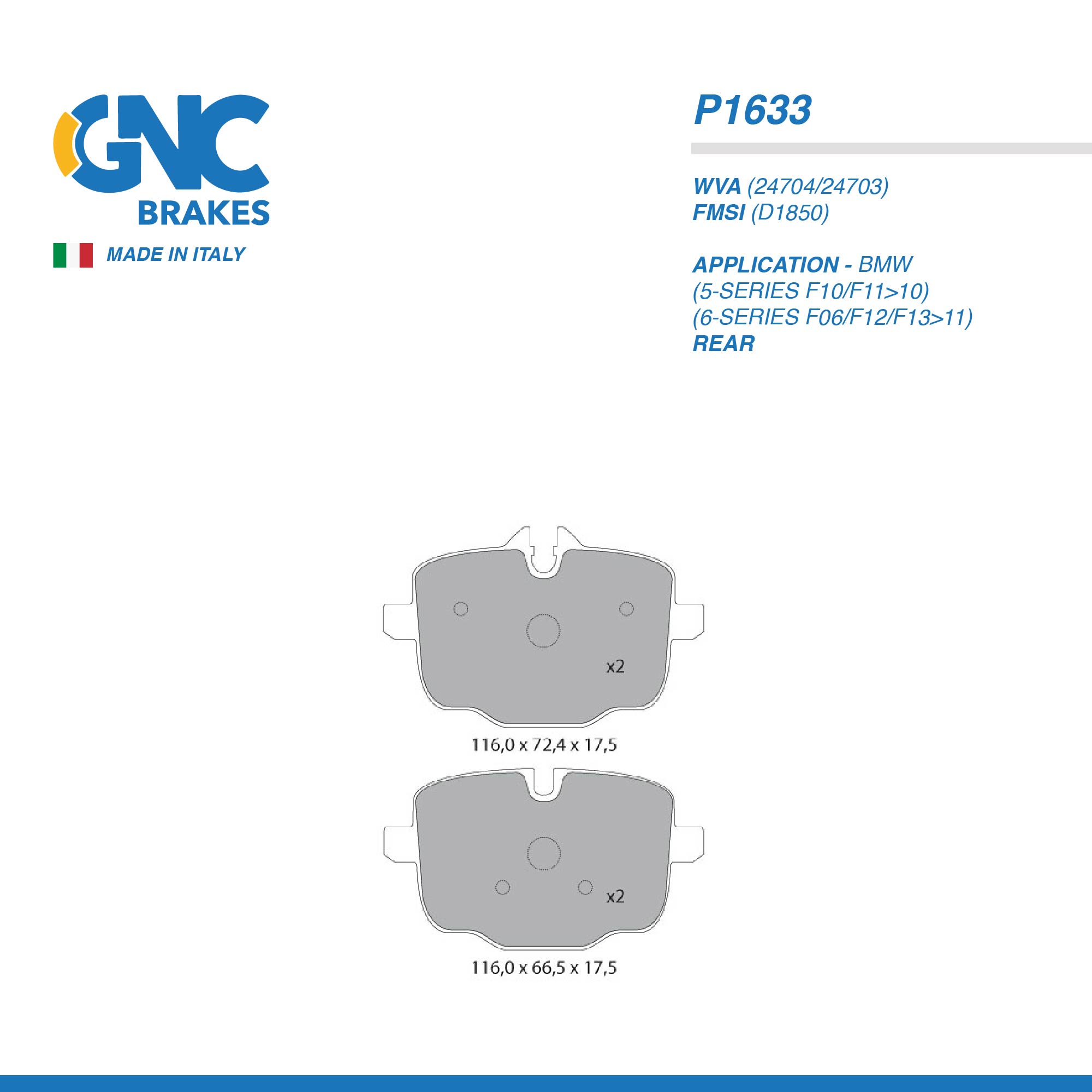 GNC PAD| P1633 BMW(5-SERIES F10/F11>10)(6-SERIES F06/F12/F13>11) RR