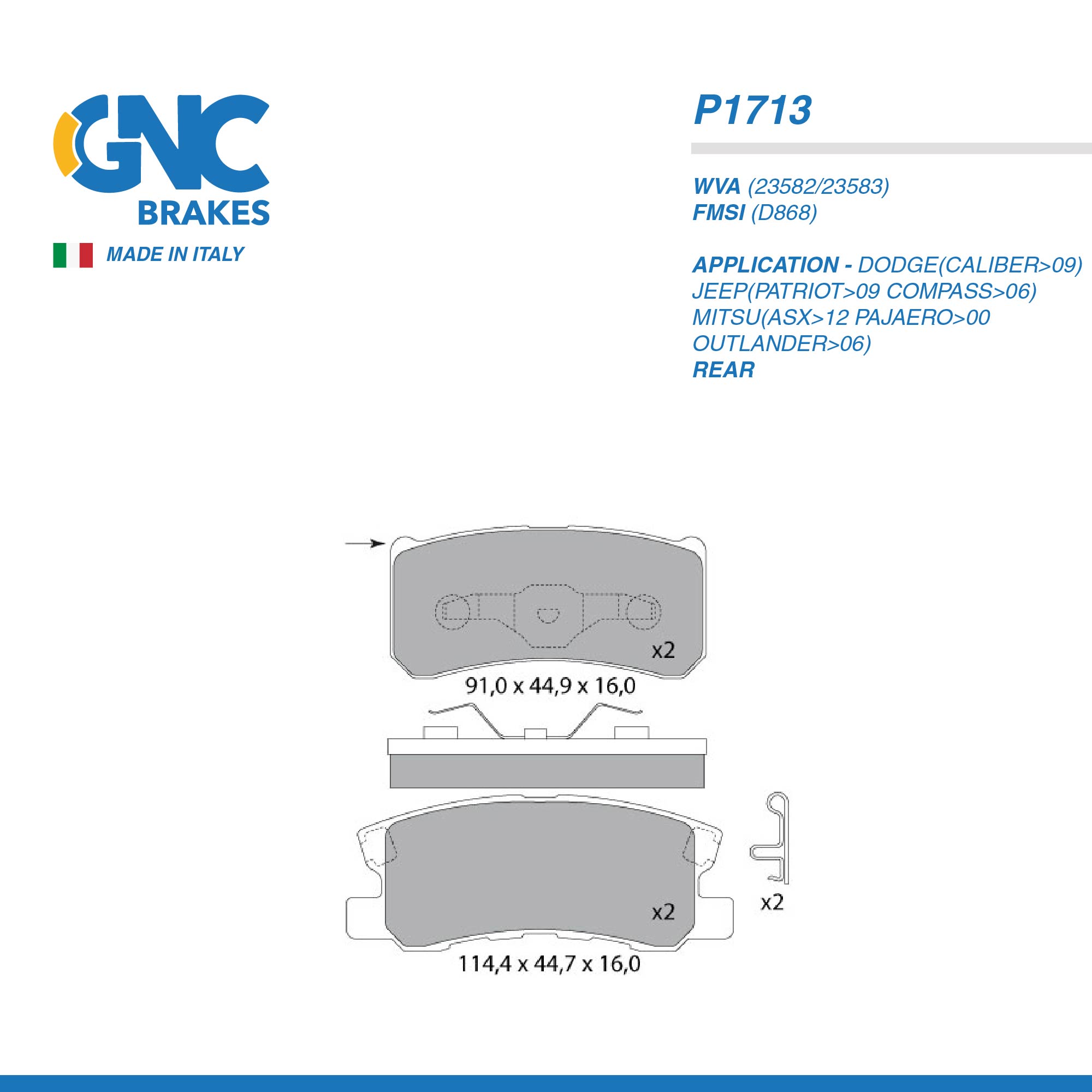 GNC PAD| P1713 DODGE(CALIBER>09)JEEP(PATRIOT>09 COMPASS>06)MITSU(ASX>12 PAJAERO>00 OUTLANDER>06) RR