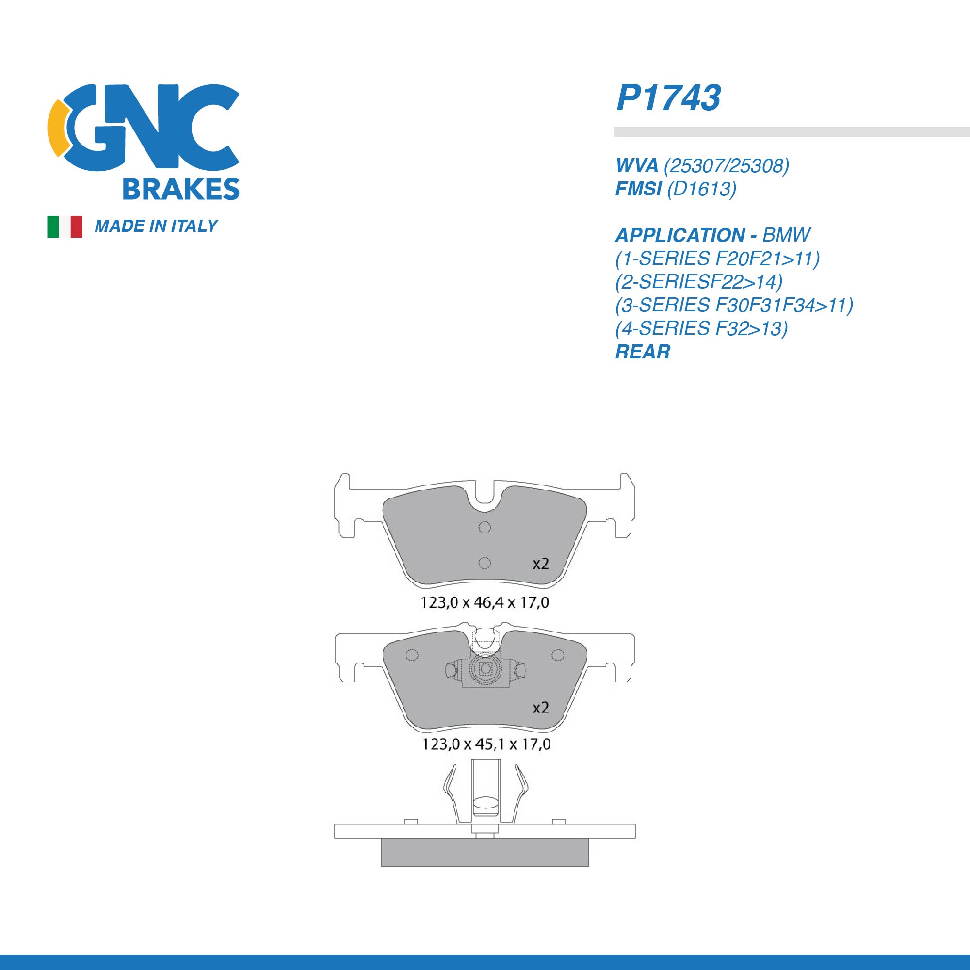 GNC PAD| P1743 BMW(1-SERIES F20F21>11)(2-SERIES F22>14)(3-SERIES F30F31F34>11)(4-SERIES F32>13) RR