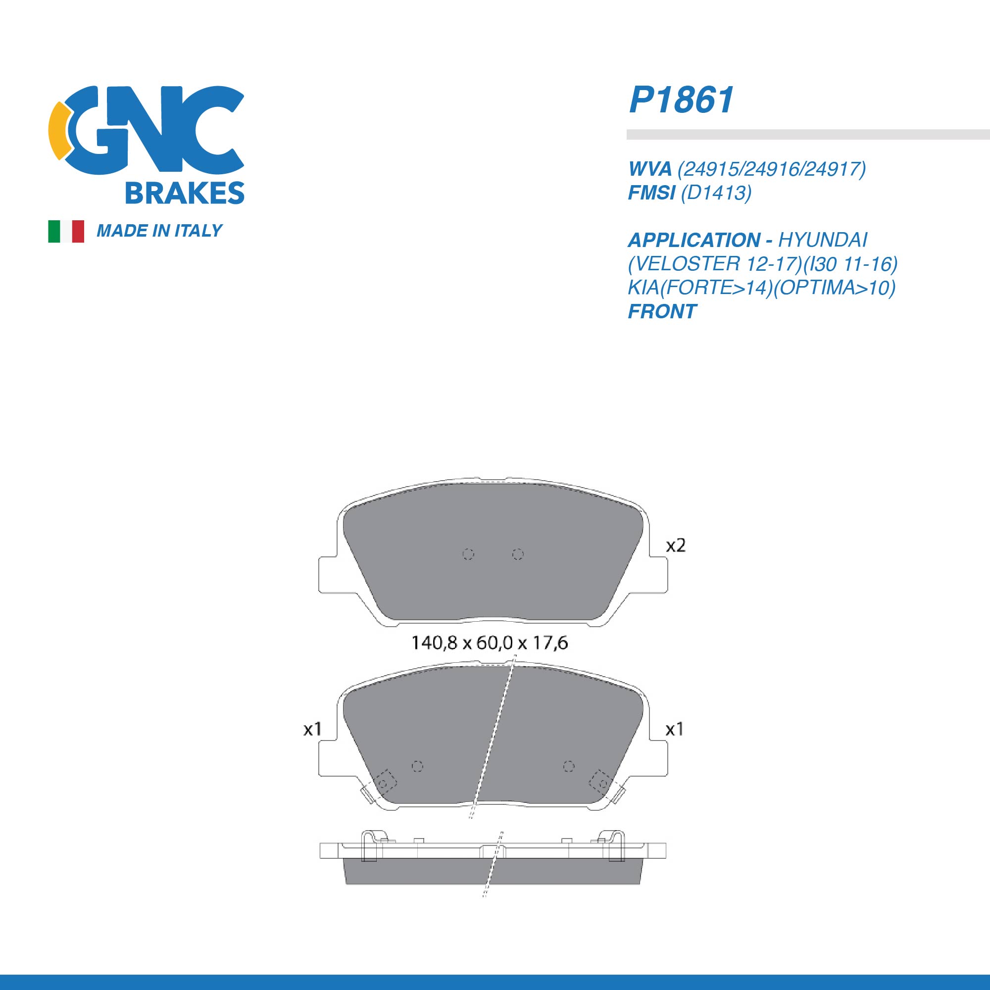GNC PAD| P1861 HYUNDAI(VELOSTER 12-17)(I30 11-16) KIA(FORTE>14)(OPTIMA>10) FRT