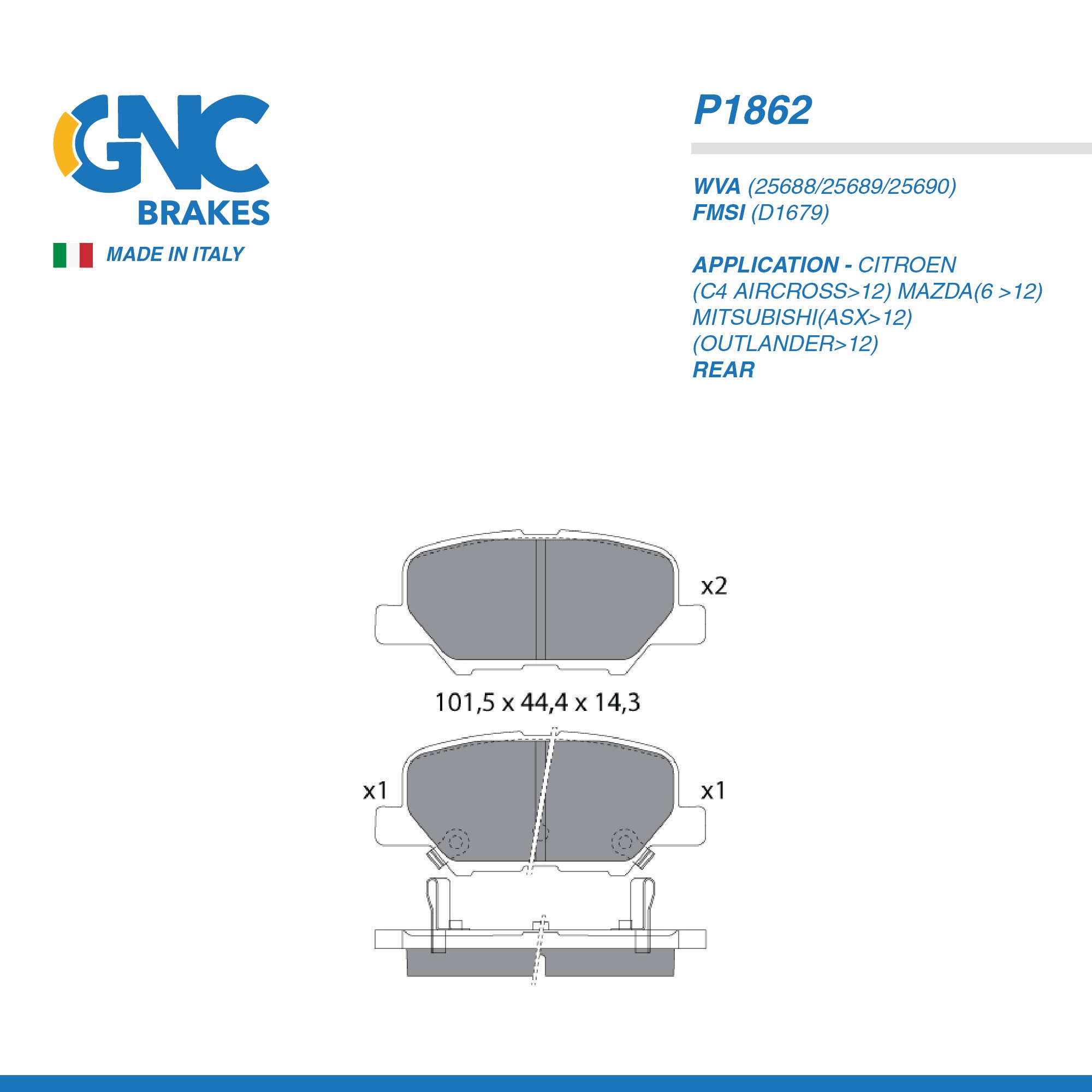 GNC PAD| P1862 CITROEN(C4 AIRCROSS>12) MAZDA(6 >12) MITSUBISHI(ASX>12)(OUTLANDER>12) RR