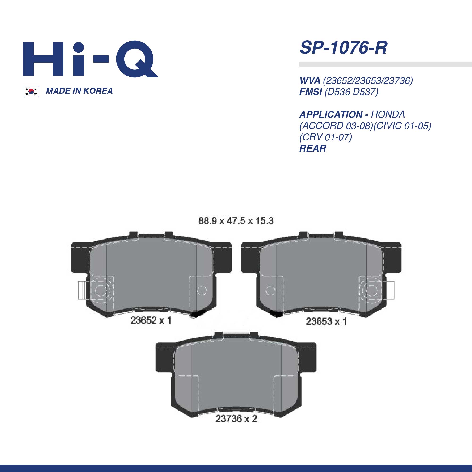 HI-Q PAD| SP-1076-R HONDA(ACCORD 03-08)(CIVIC 01-05)(CRV 01-07) RR