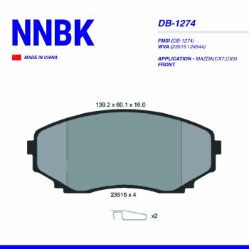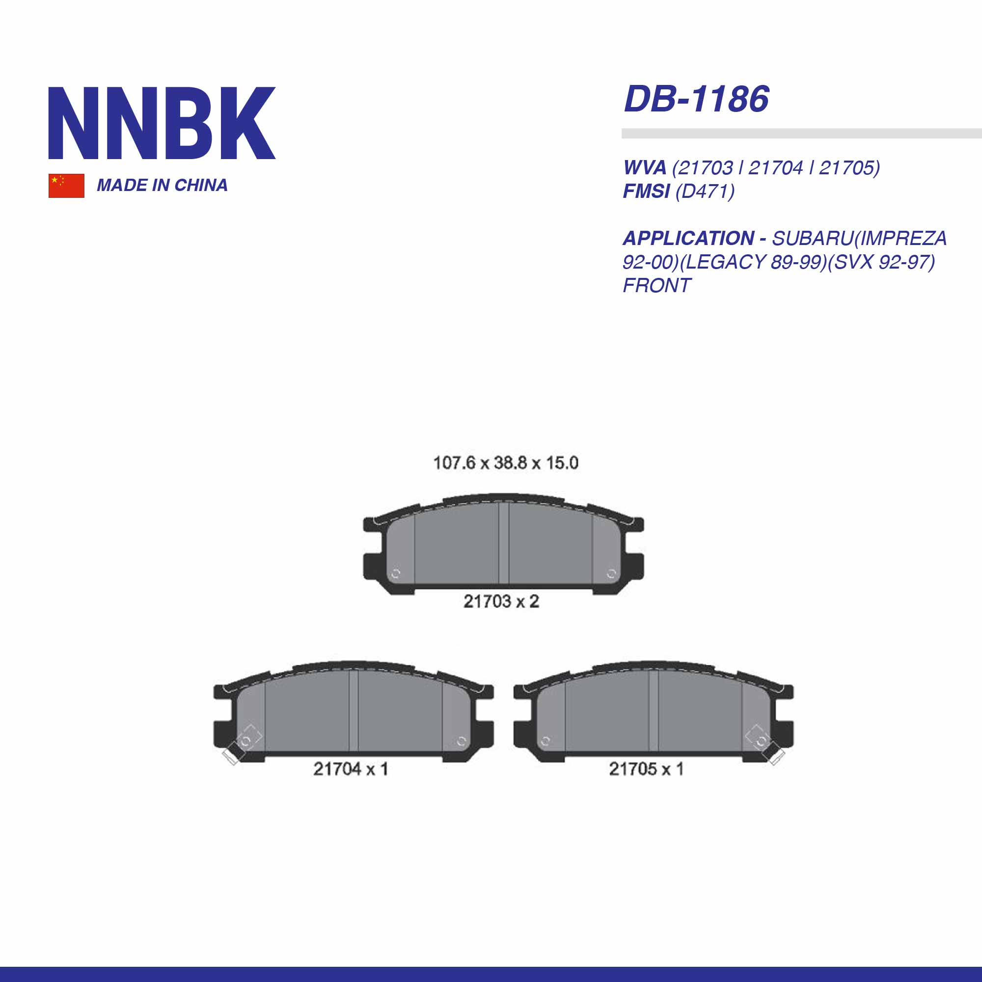 NNBK PAD| DB-1186 SUBARU(IMPREZA 92-00)(LEGACY 89-99)(SVX 92-97) FRT
