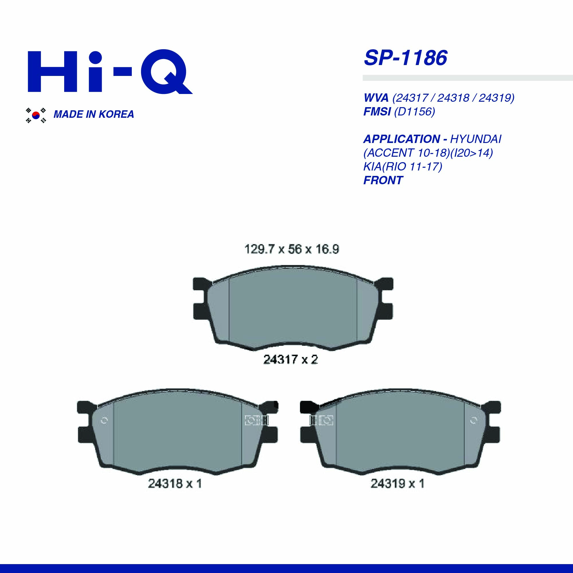 HI-Q PAD| SP-1186 HYUNDAI(ACCENT 10-18)(I20>14) KIA(RIO 11-17) FRT