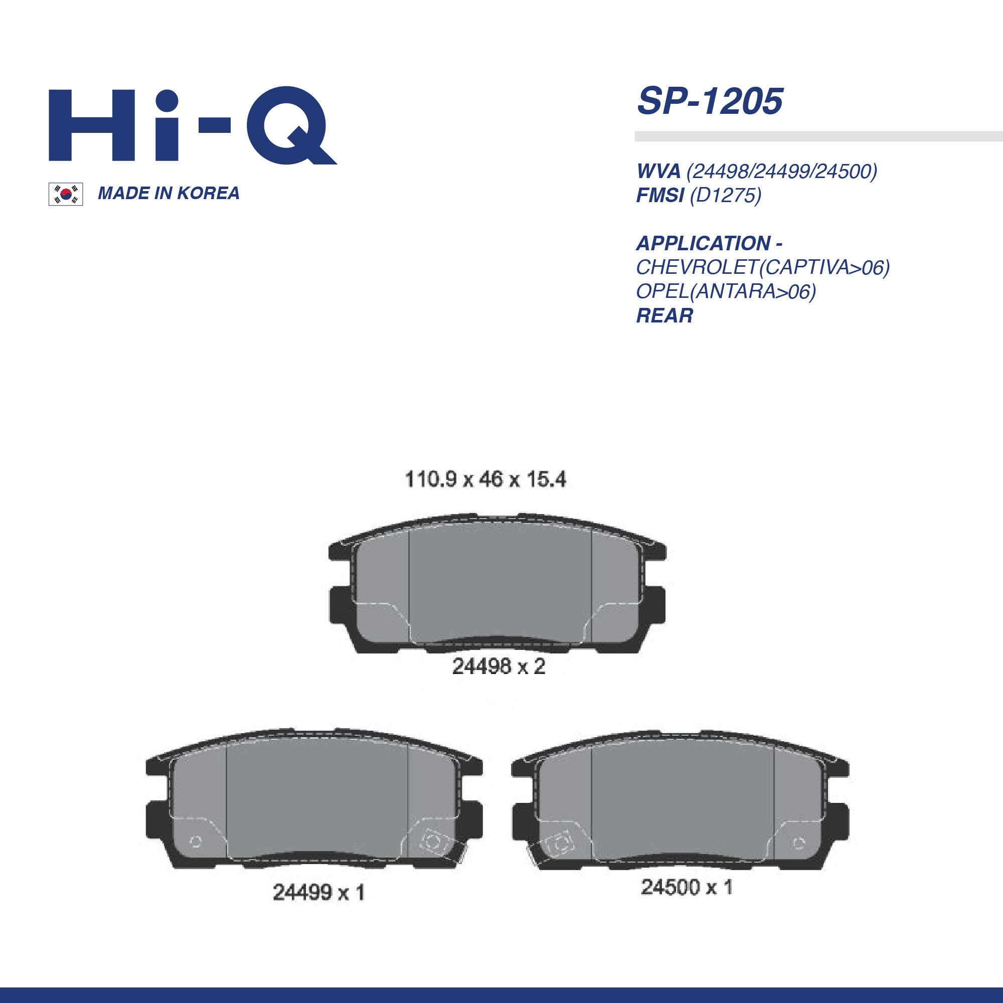 HI-Q PAD| SP-1205 CHEVROLET(CAPTIVA>06)OPEL(ANTARA>06) RR