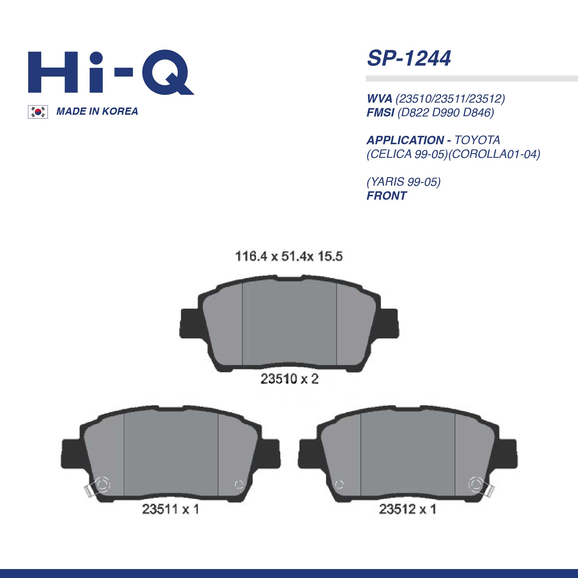 HI-Q PAD| SP-1244 TOYOTA(CELICA 99-05)(COROLLA 01-04)(YARIS 99-05) FRT