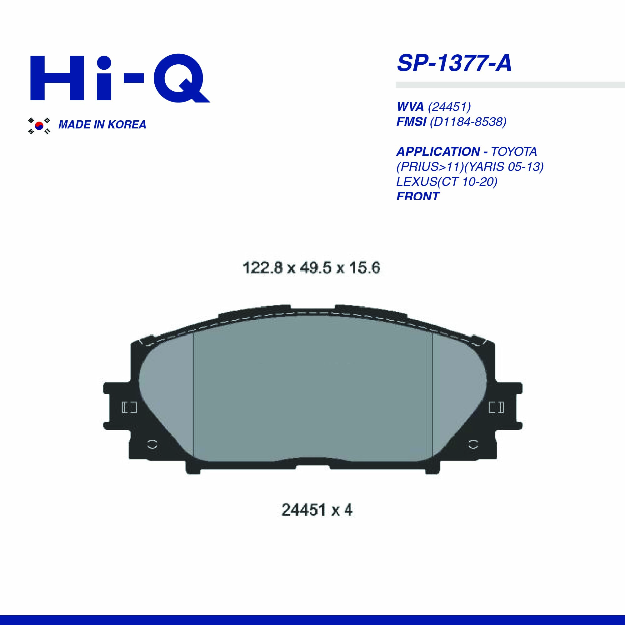 HI-Q PAD| SP-1377-A TOYOTA(PRIUS>11)(YARIS 05-13)LEXUS(CT 10-20) FRT