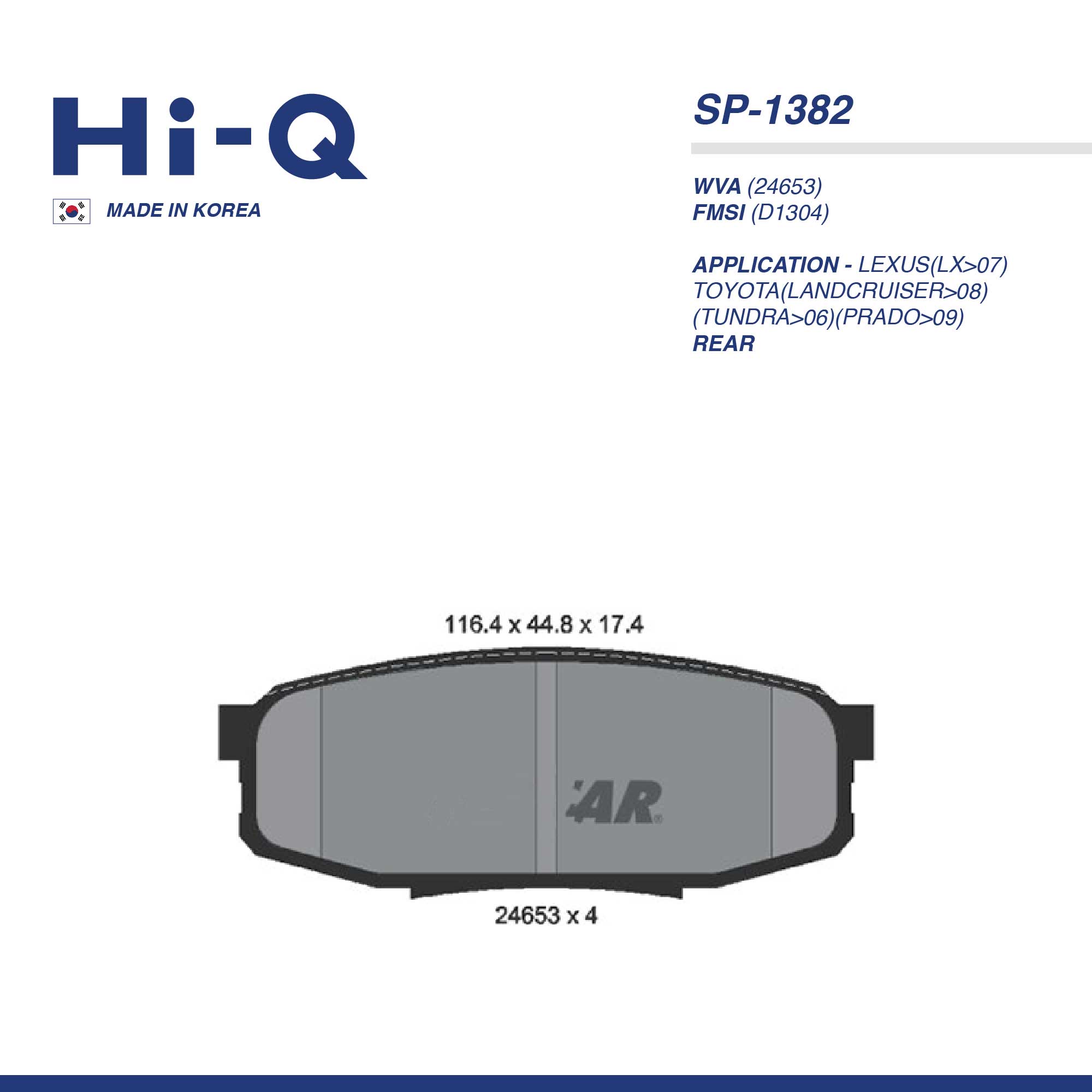 HI-Q PAD| SP-1382 LEXUS(LX>07)TOYOTA(LANDCRUISER>08)(TUNDRA>06)(PRADO>09) RR