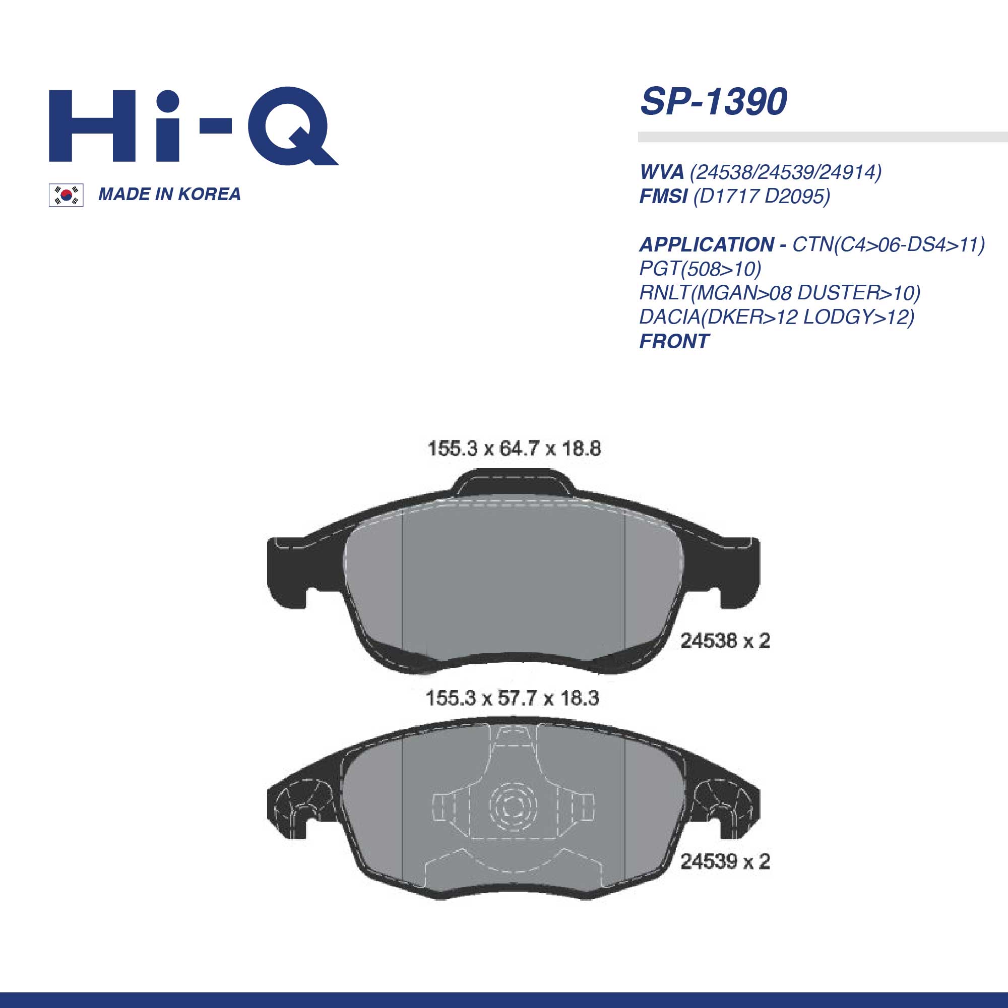 HI-Q PAD| SP-1390 CTN(C4>06-DS4>11)PGT(508>10)RNLT(MGAN>08 DUSTER>10)DACIA(DKER>12 LODGY>12) FRT