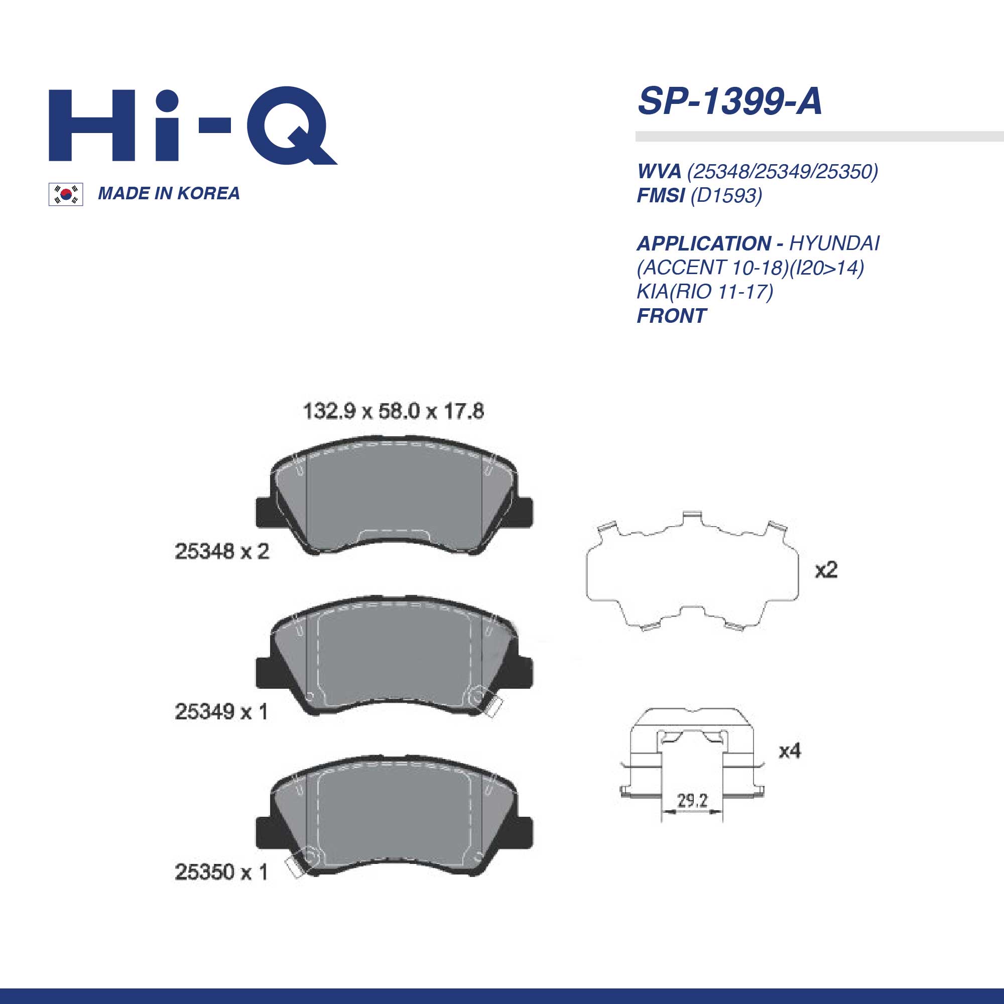 HI-Q PAD| SP-1399-A HYUNDAI(ACCENT 10-18)(I20>14) KIA(RIO 11-17) FRT