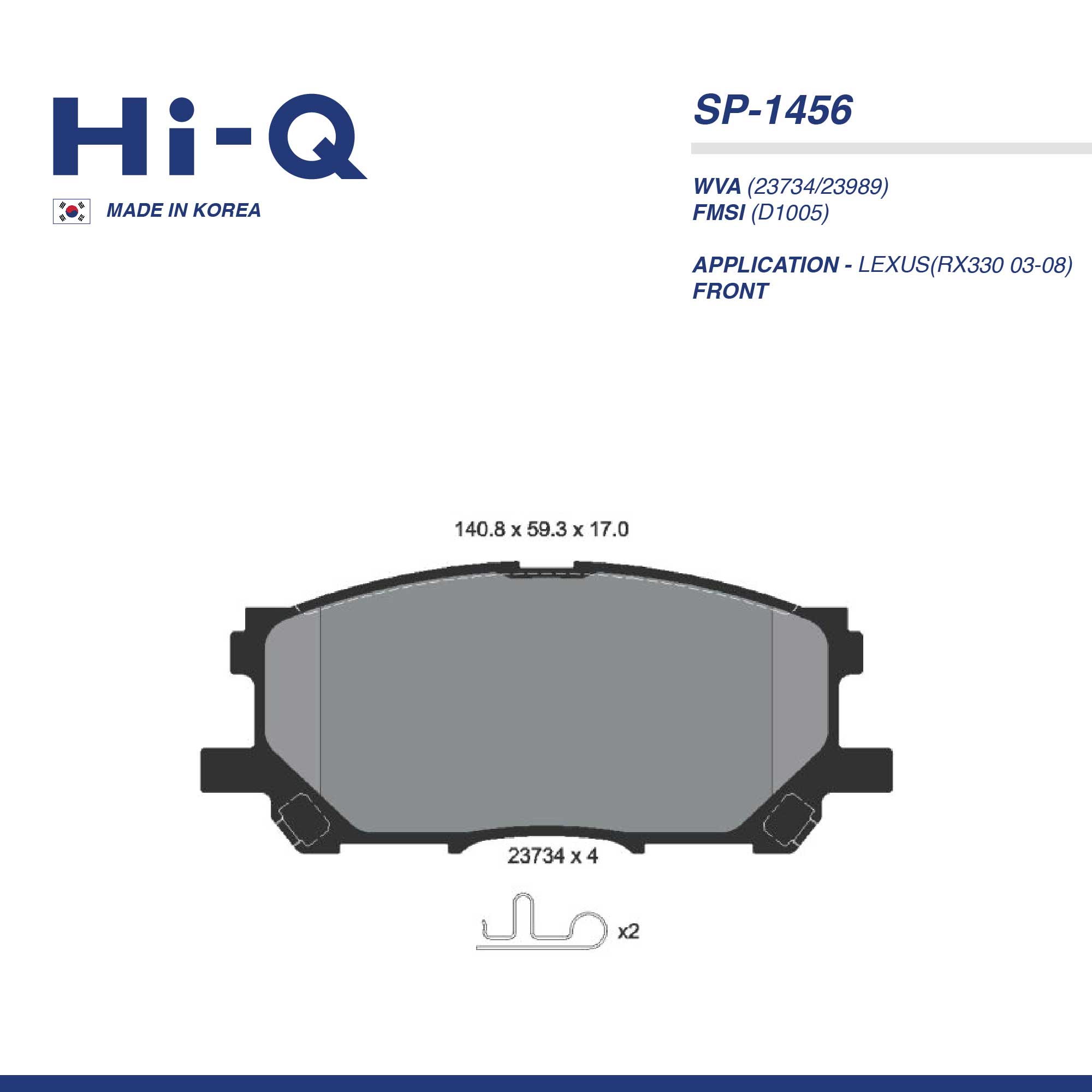 HI-Q PAD| SP-1456 LEXUS(RX330 03-08) FRT