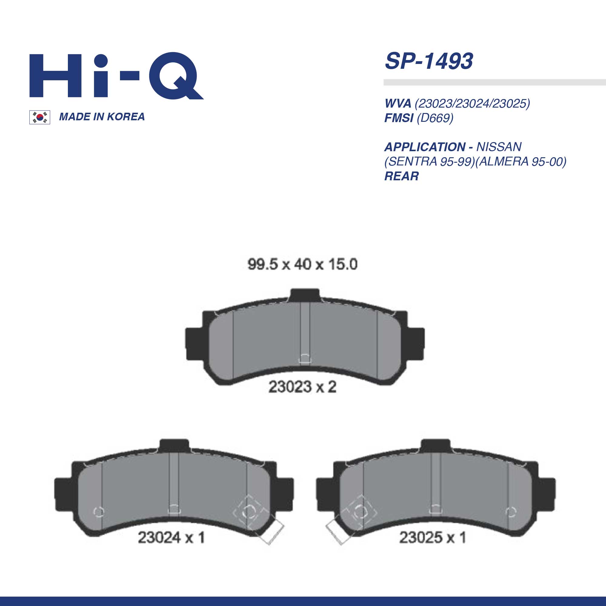 HI-Q PAD| SP-1493 NISSAN(SENTRA 95-99)(ALMERA 95-00) RR