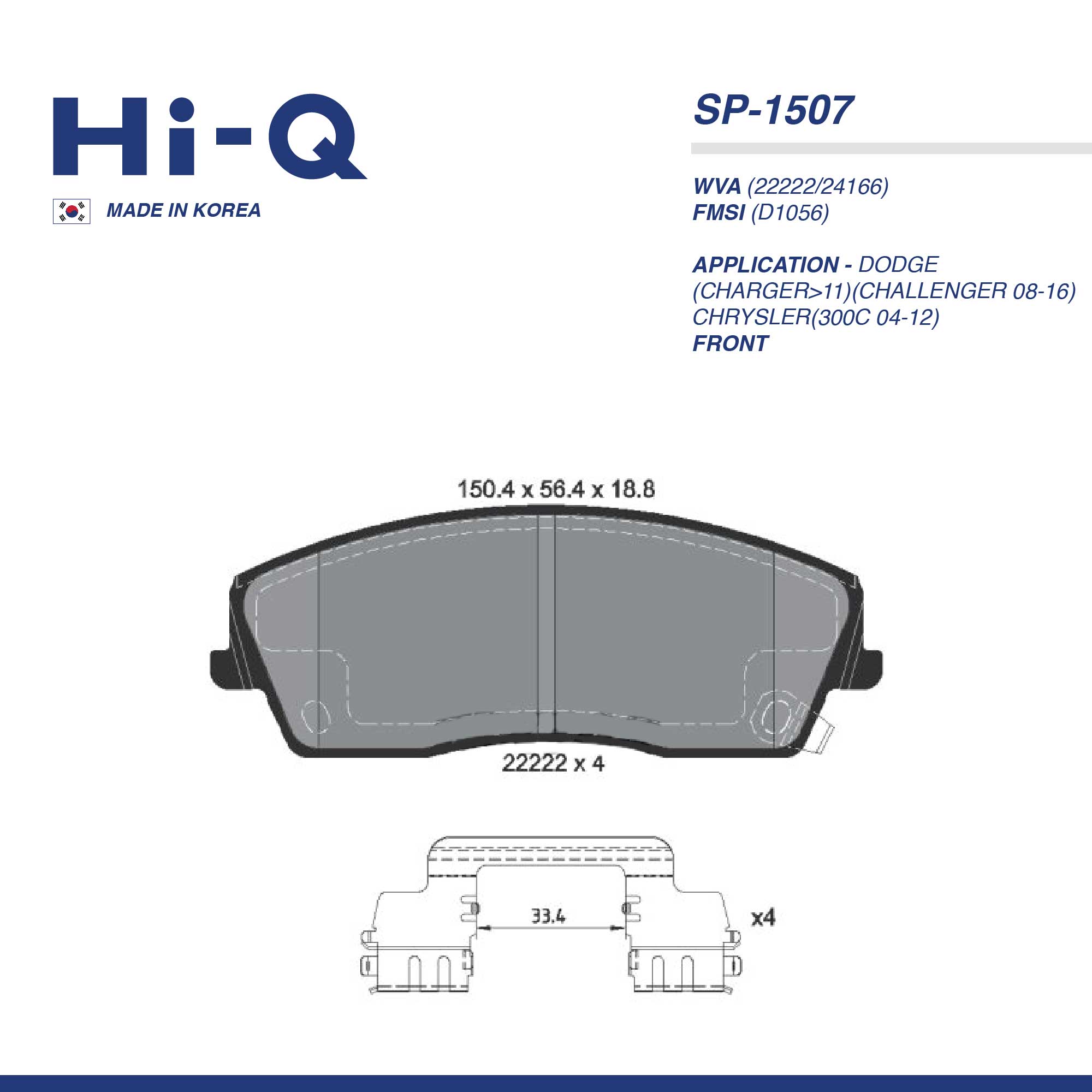 HI-Q PAD| SP-1507 DODGE(CHARGER>11)(CHALLENGER 08-16) CHRYSLER(300C 04-12) FRT