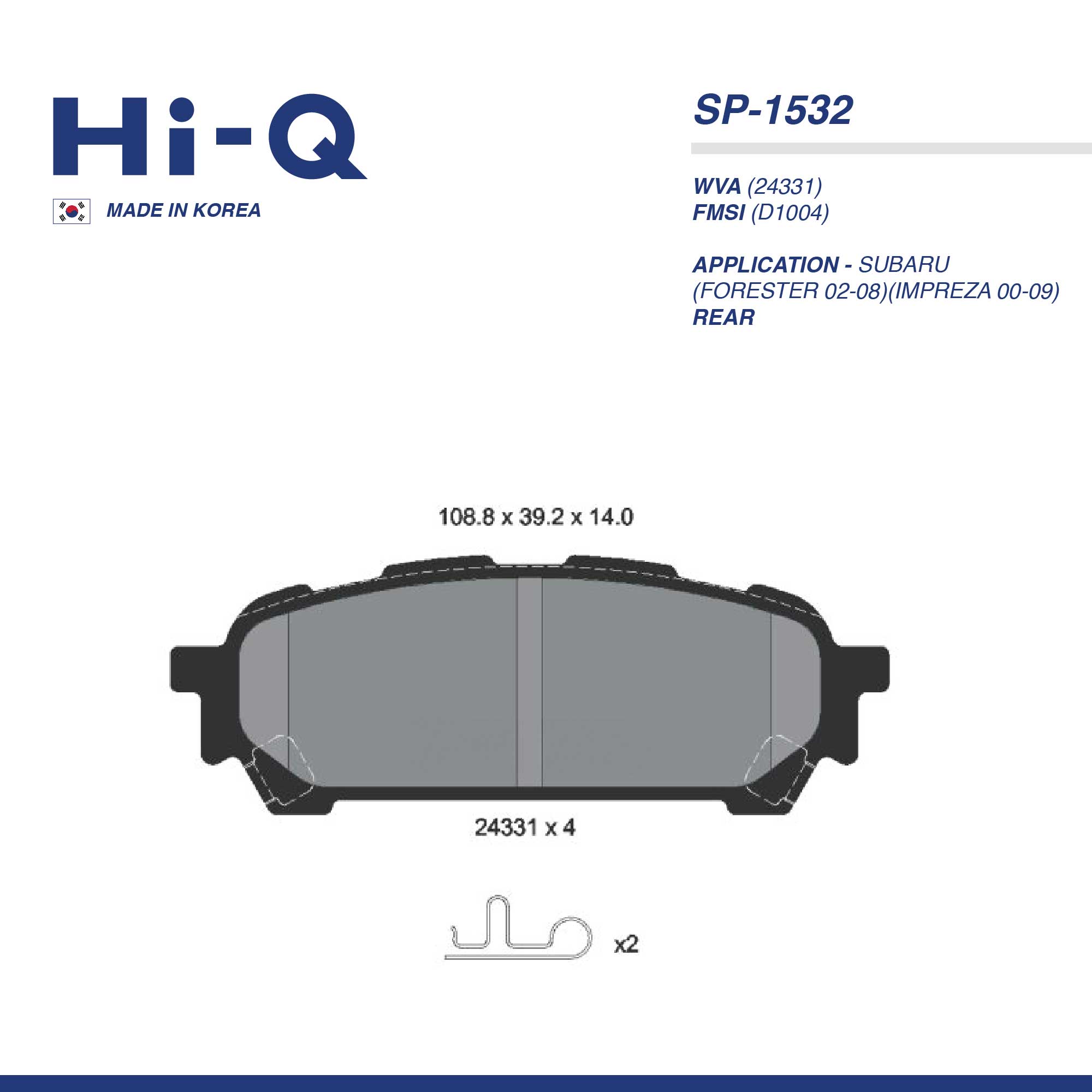 HI-Q PAD| SP-1532 SUBARU(FORESTER 02-08)(IMPREZA 00-09) RR