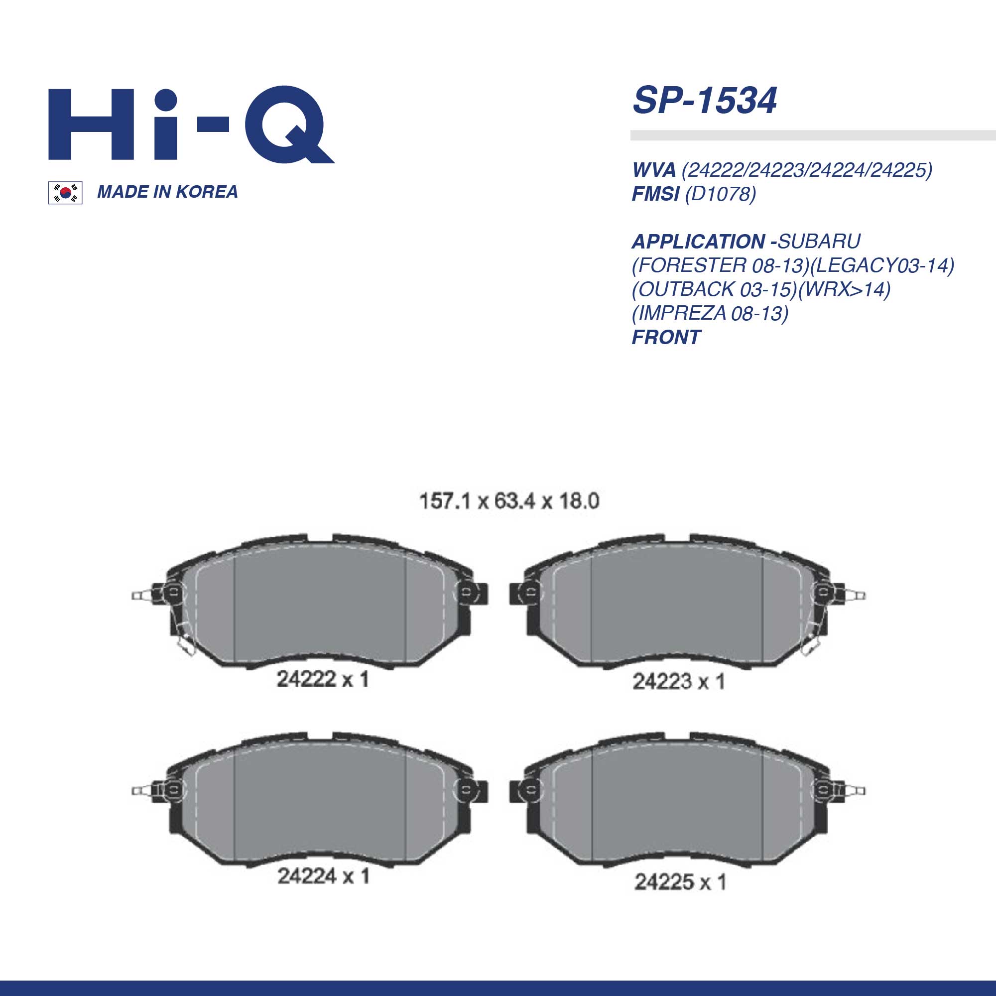 HI-Q PAD| SP-1534 SUBARU(FORESTER 08-13)(LEGACY 03-14)(OUTBACK 03-15)(WRX>14)(IMPREZA 08-13) FRT