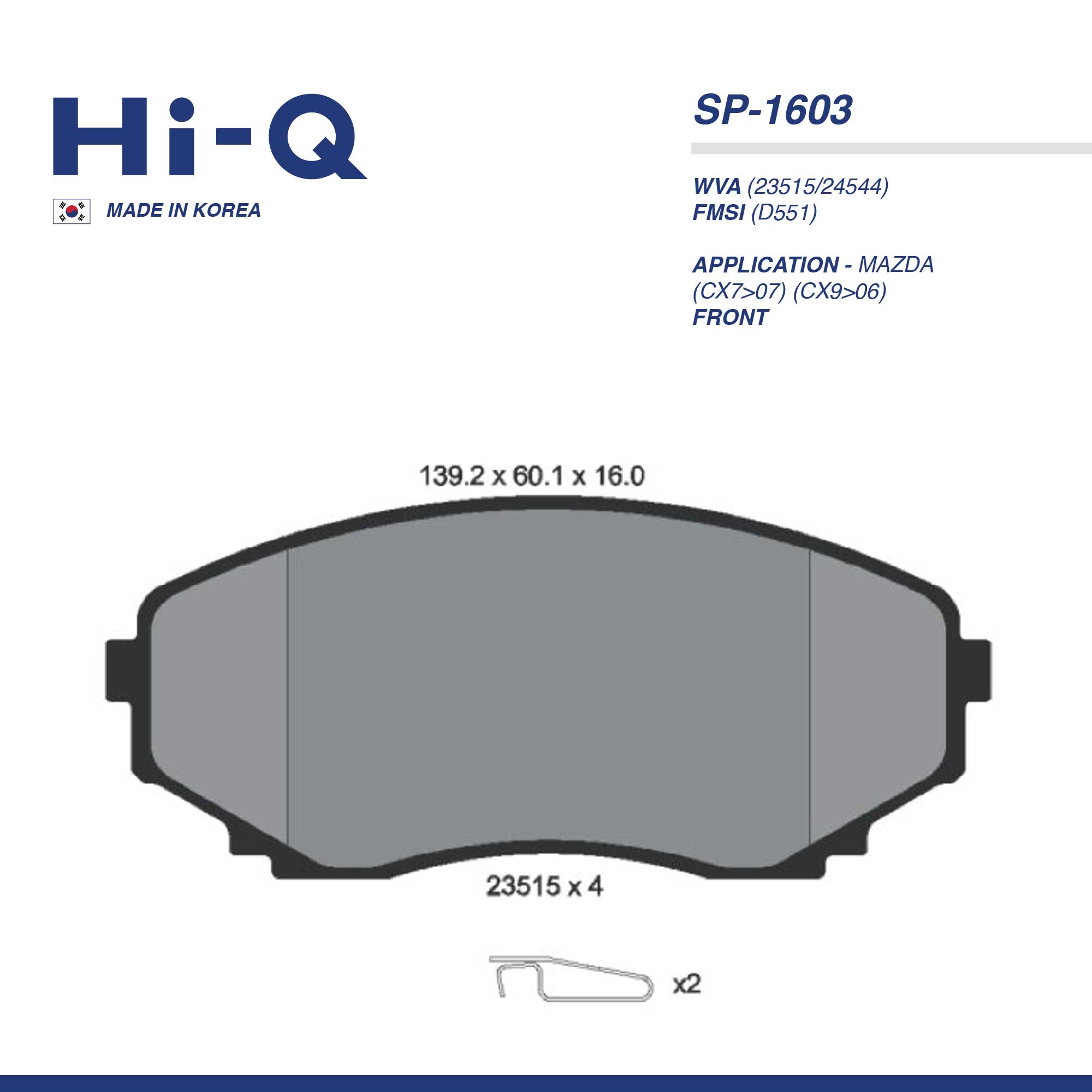 HI-Q PAD| SP-1603 MAZDA (CX7>07) (CX9>06) FRT