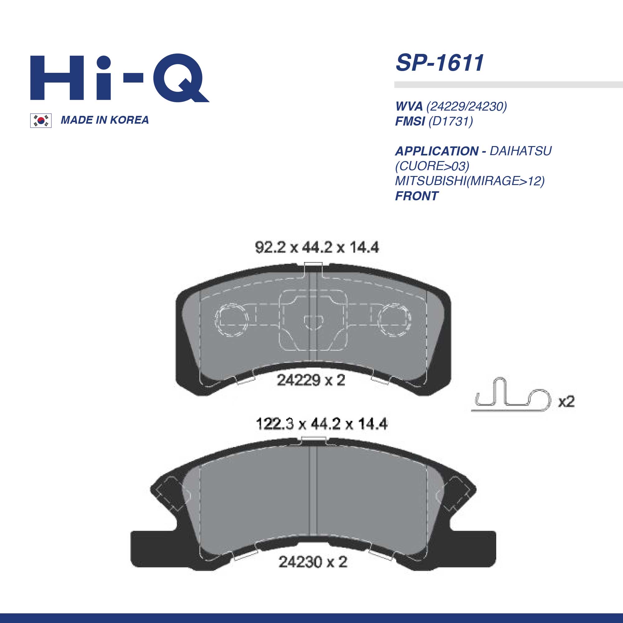 HI-Q PAD| SP-1611 DAIHATSU(CUORE>03) MITSUBISHI(MIRAGE>12) FRT