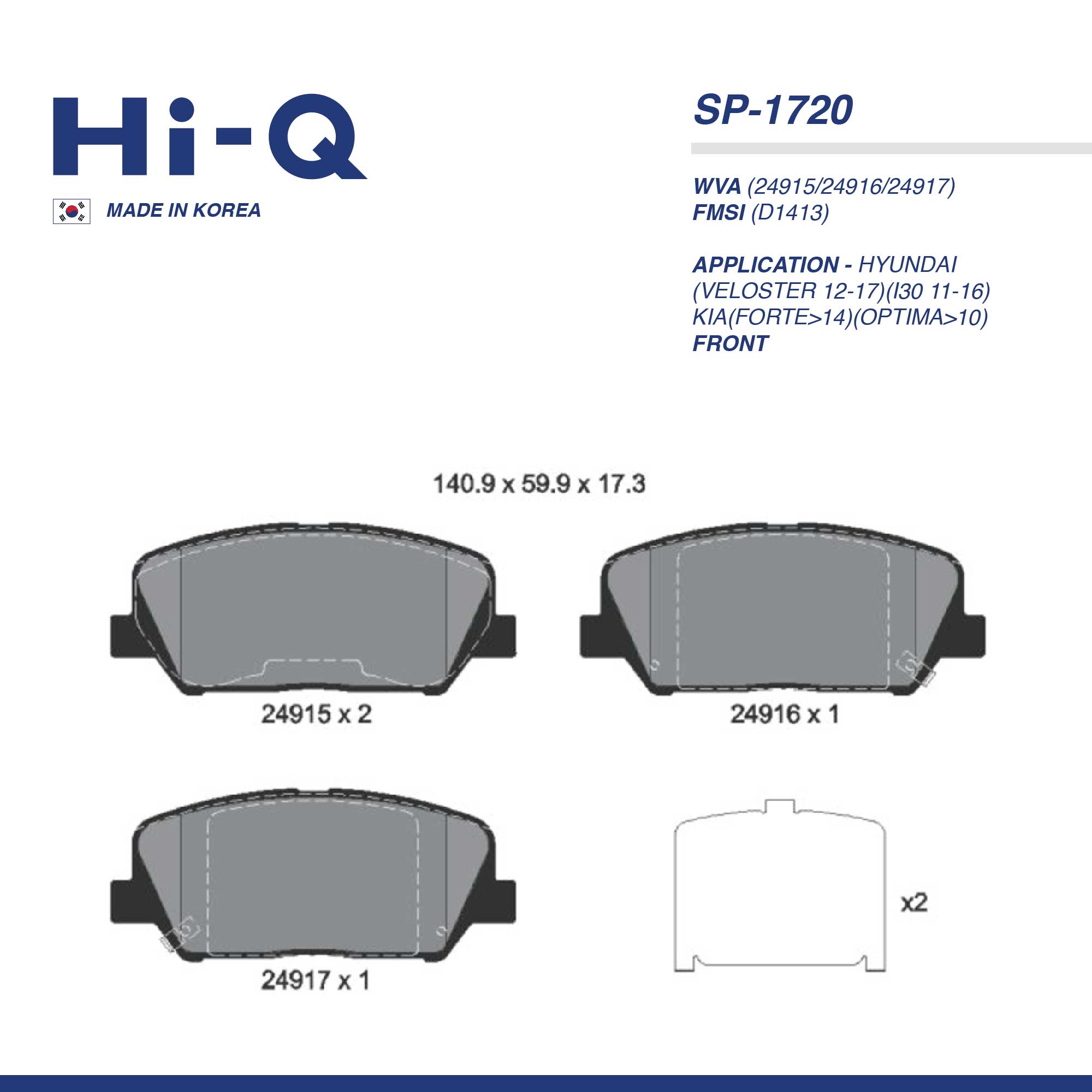 HI-Q PAD| SP-1720 HYUNDAI(VELOSTER 12-17)(I30 11-16) KIA(FORTE>14)(OPTIMA>10) FRT