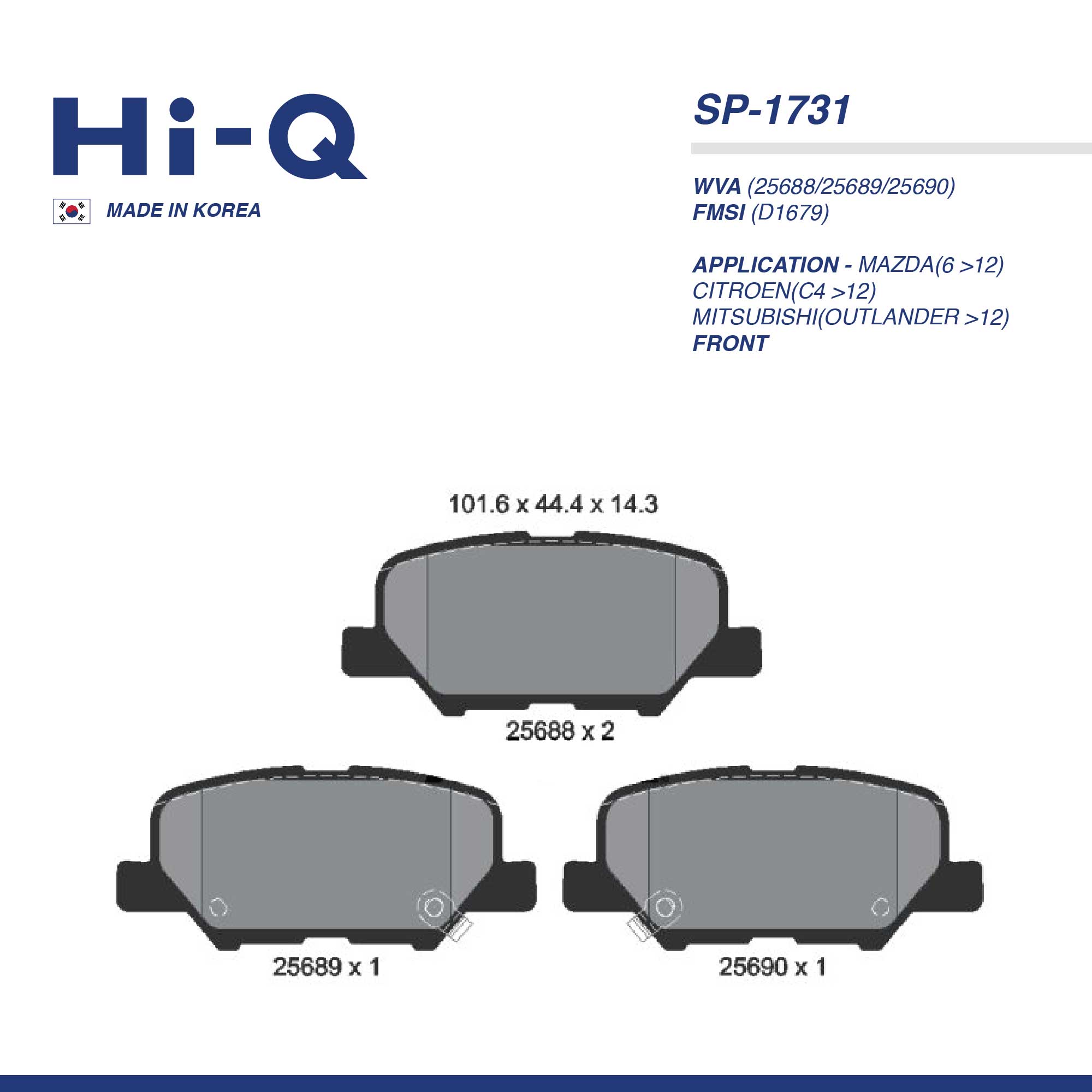 HI-Q PAD| SP-1731 MAZDA(6 >12) CITROEN(C4 >12) MITSUBISHI(OUTLANDER >12) RR
