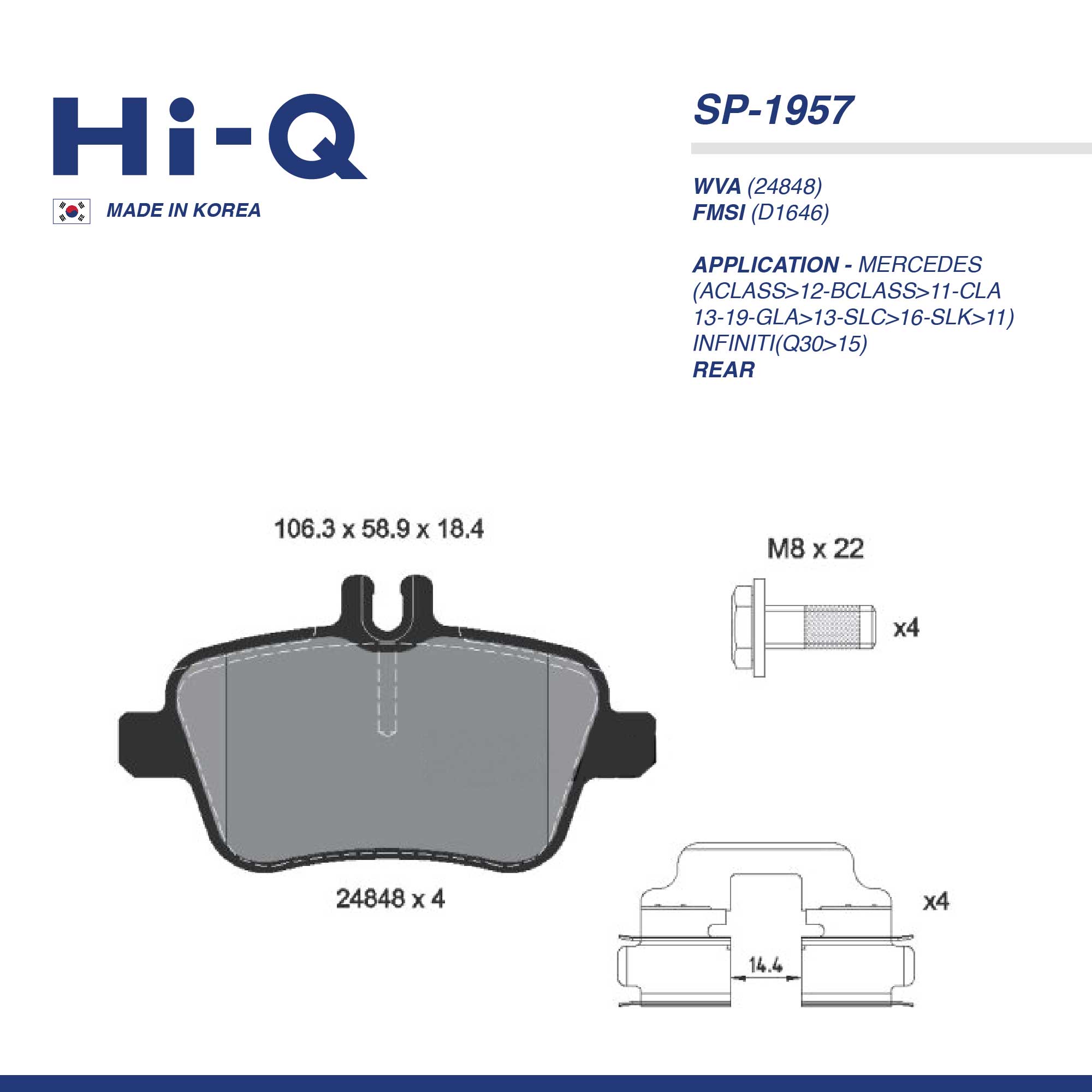 HI-Q PAD| SP-1957 MERCEDES(ACLASS>12-BCLASS>11-CLA 13-19-GLA>13-SLC>16-SLK>11)INFINITI(Q30>15) RR
