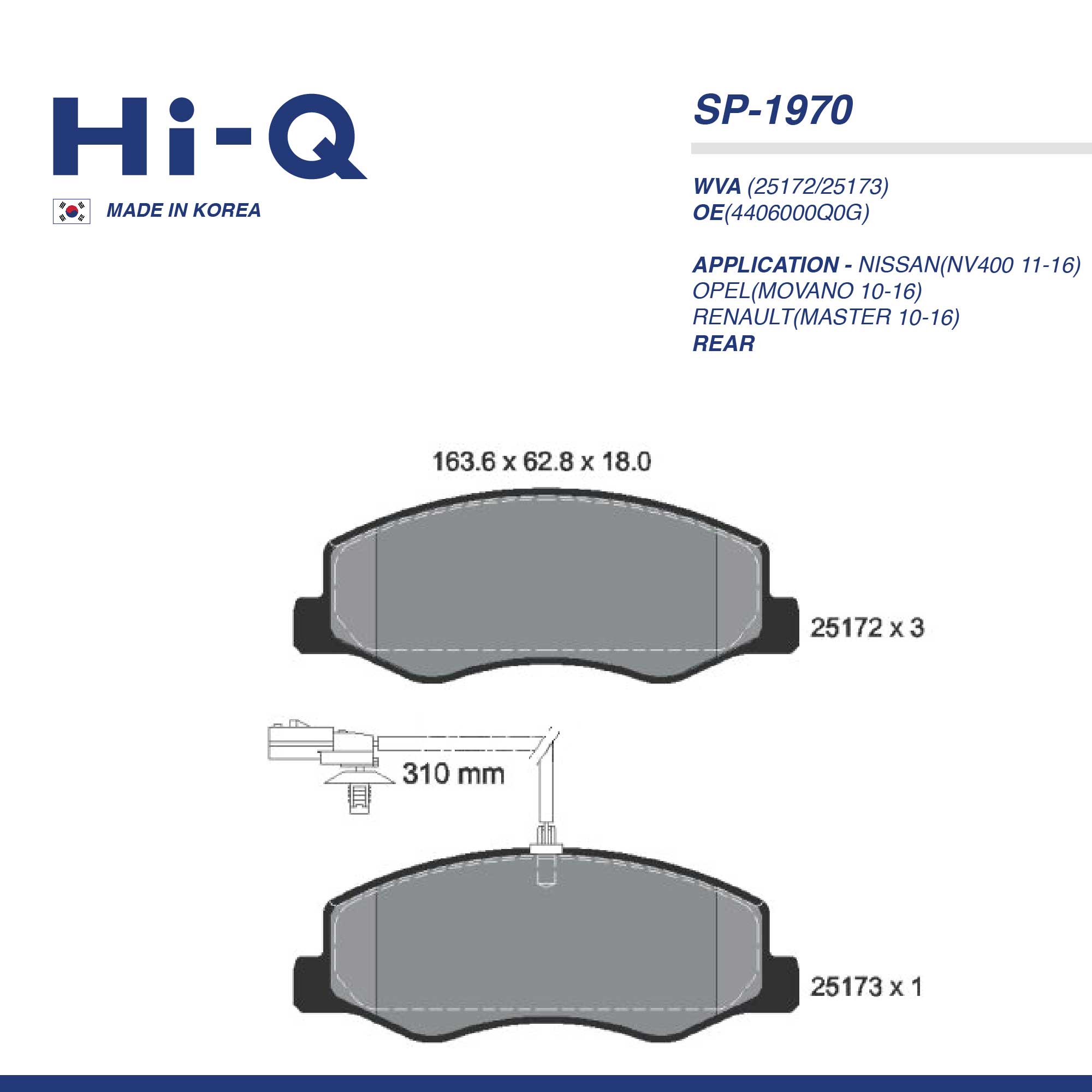 HI-Q PAD| SP-1970 NISSAN(NV400 11-16) OPEL(MOVANO 10-16) RENAULT(MASTER 10-16) RR