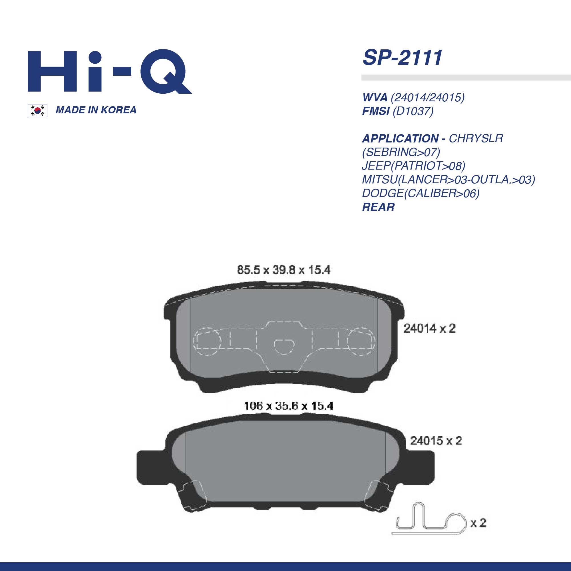 HI-Q PAD| SP-2111 CHRYSLR(SEBRING>07)JEEP(PATRIOT>08)MITSU(LANCER>03-OUTLA.>03)DODGE(CALIBER>06) RR