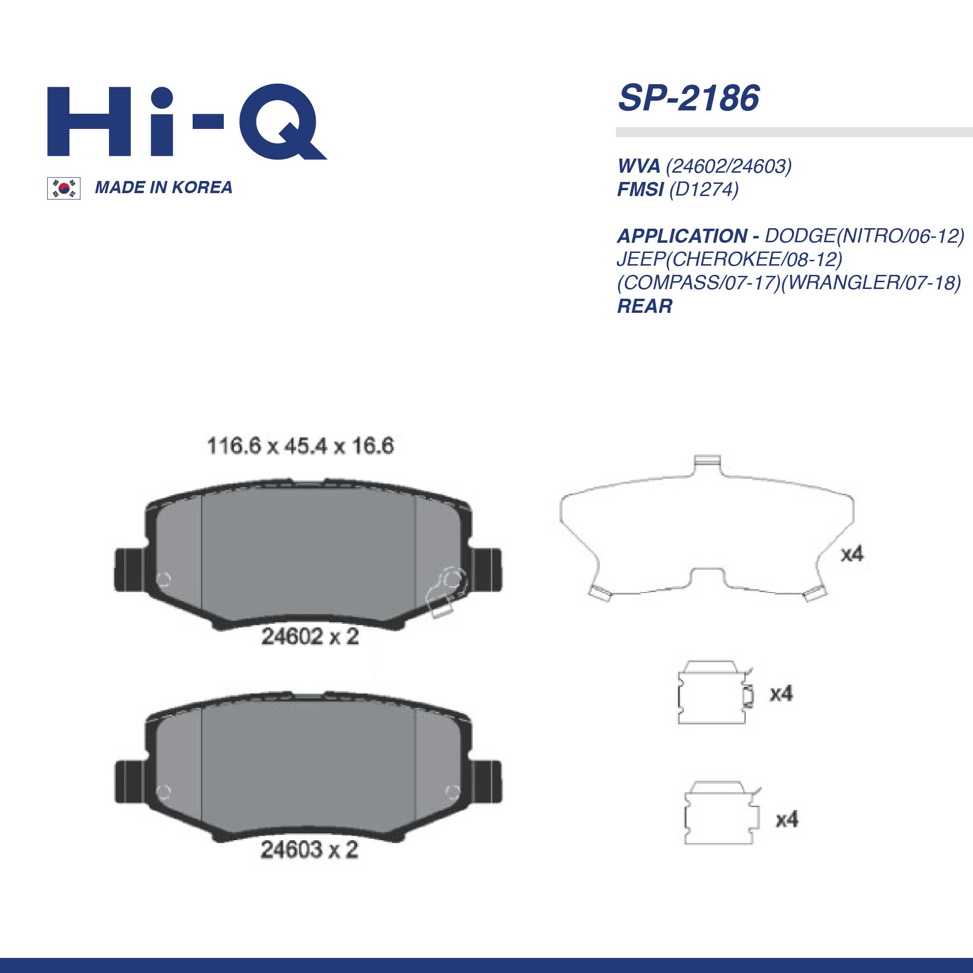 HI-Q PAD| SP-2186 DODGE(NITRO/06-12) JEEP(CHEROKEE/08-12)(COMPASS/07-17)(WRANGLER/07-18) RR