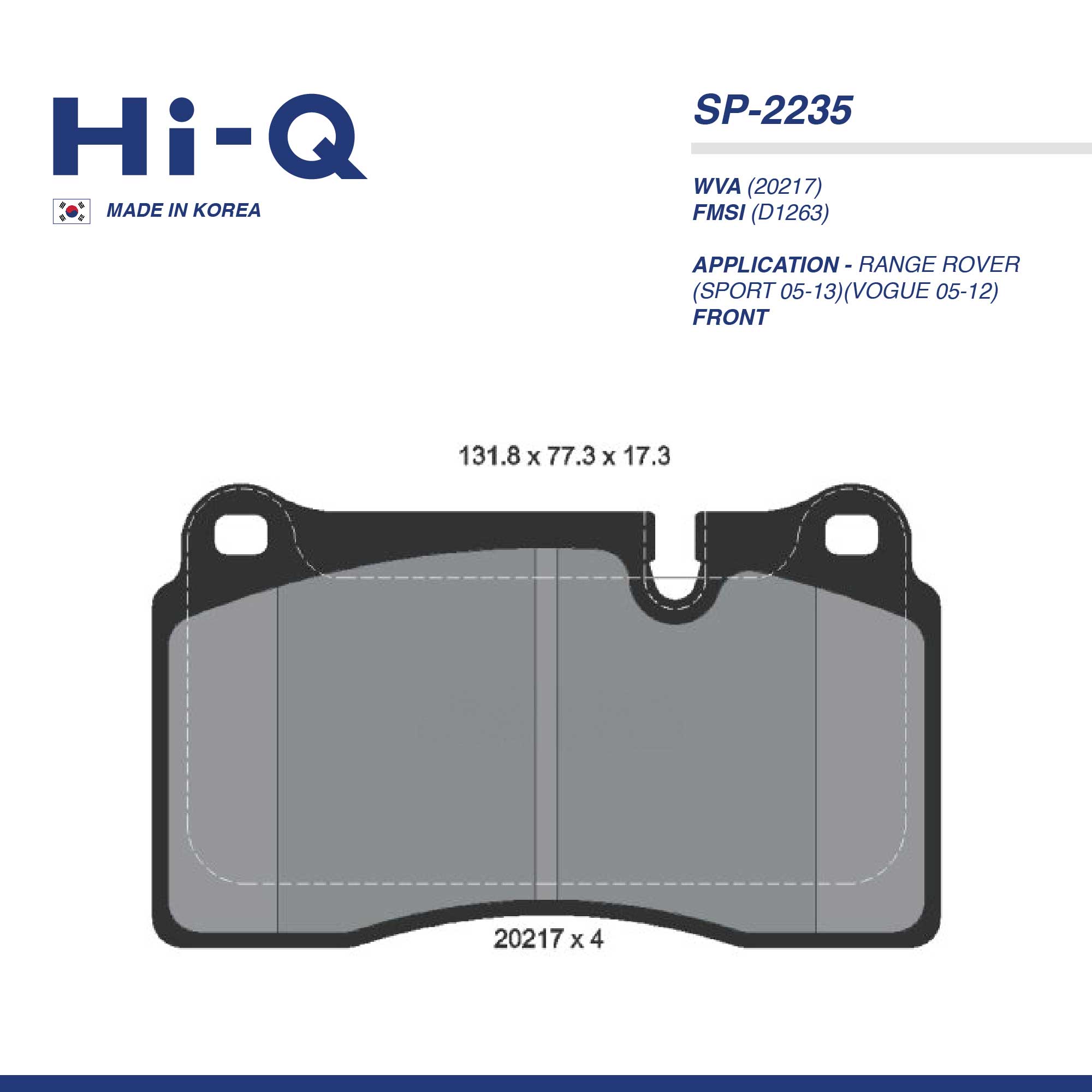 HI-Q PAD| SP-2235 RANGE ROVER(SPORT 05-13)(VOGUE 05-12) FRT