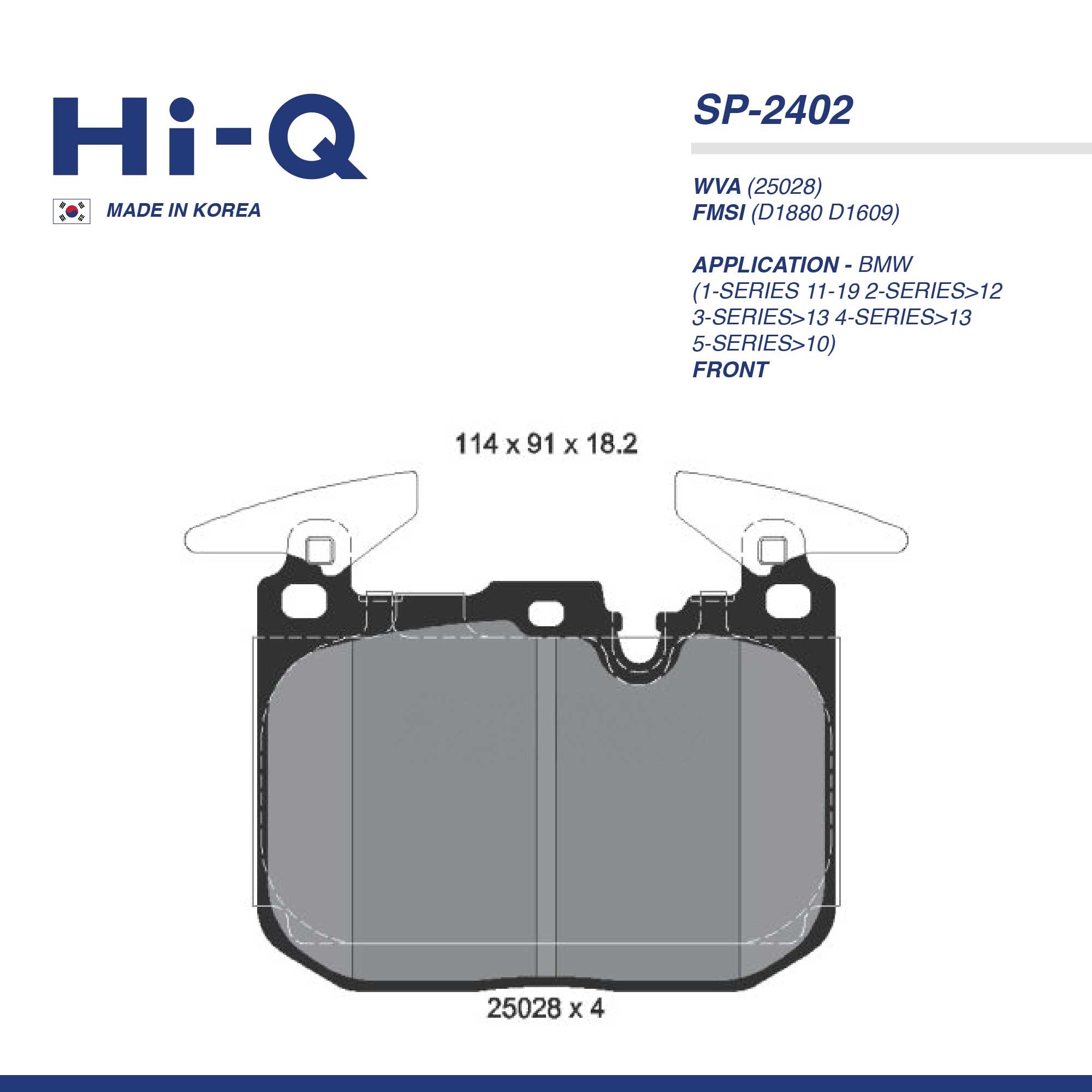 HI-Q PAD| SP-2402 BMW(1-SERIES 11-19 2-SERIES>12 3-SERIES>13 4-SERIES>13 5-SERIES>10) FRT