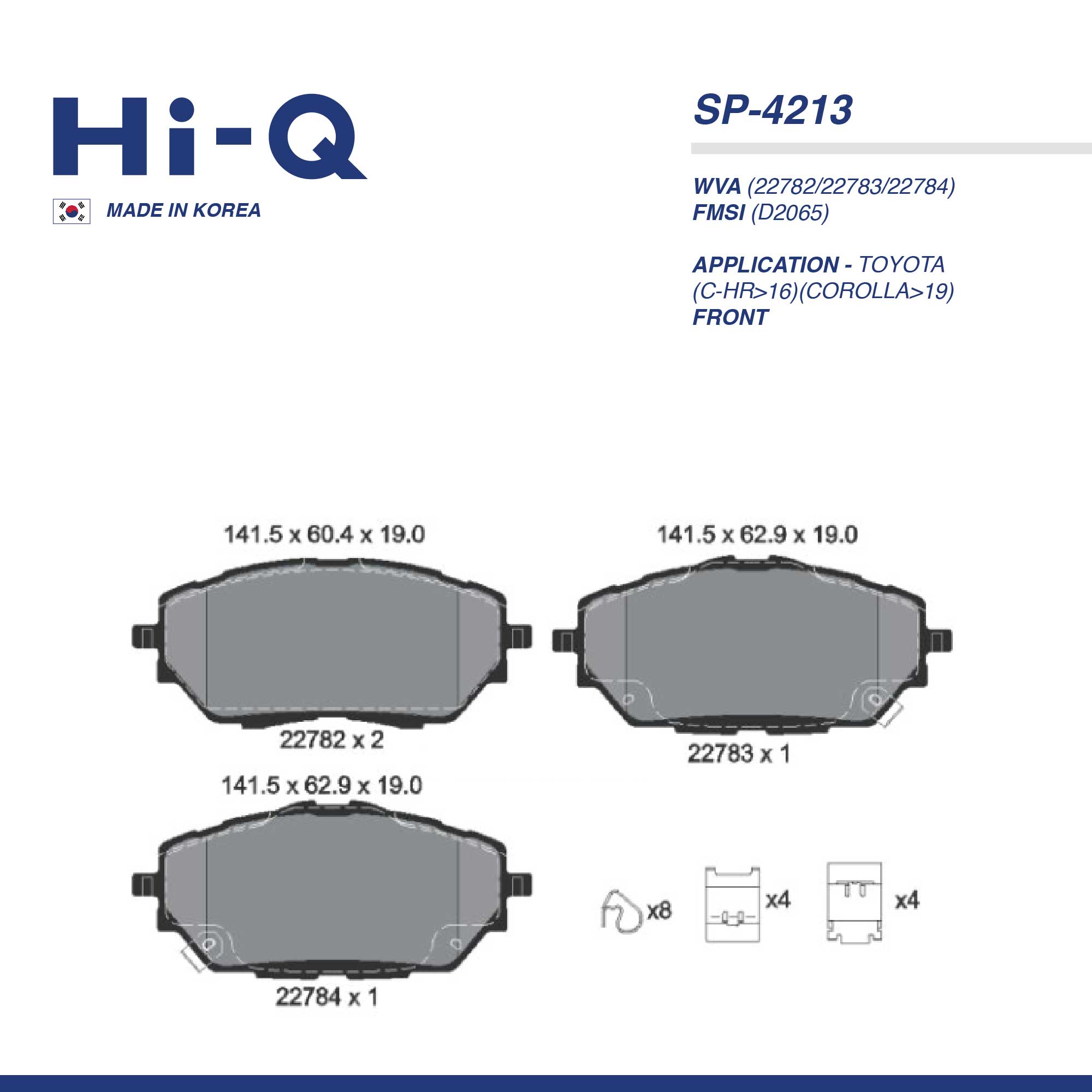 HI-Q PAD| SP-4213 TOYOTA(C-HR>16)(COROLLA>19) FRT