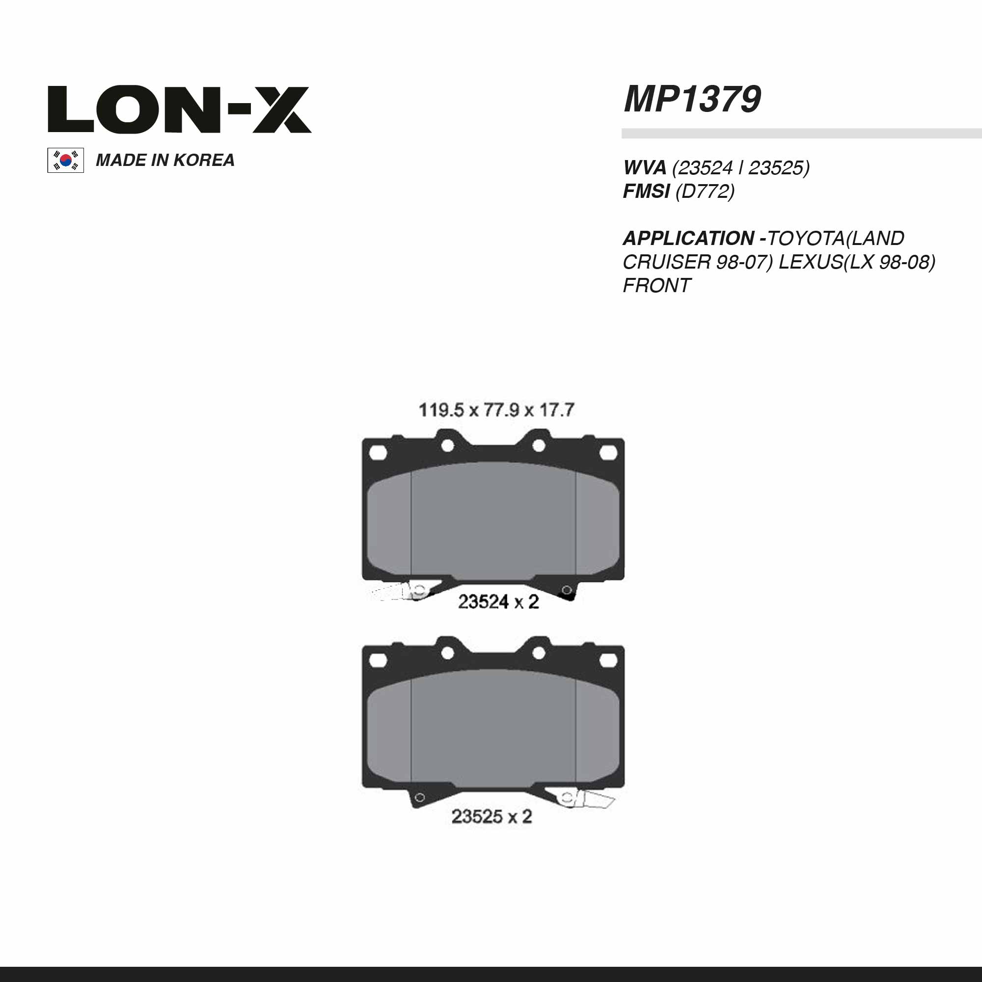 LON-X PAD| MP1379 TOYOTA(LAND CRUISER 98-07) LEXUS(LX 98-08) FRT