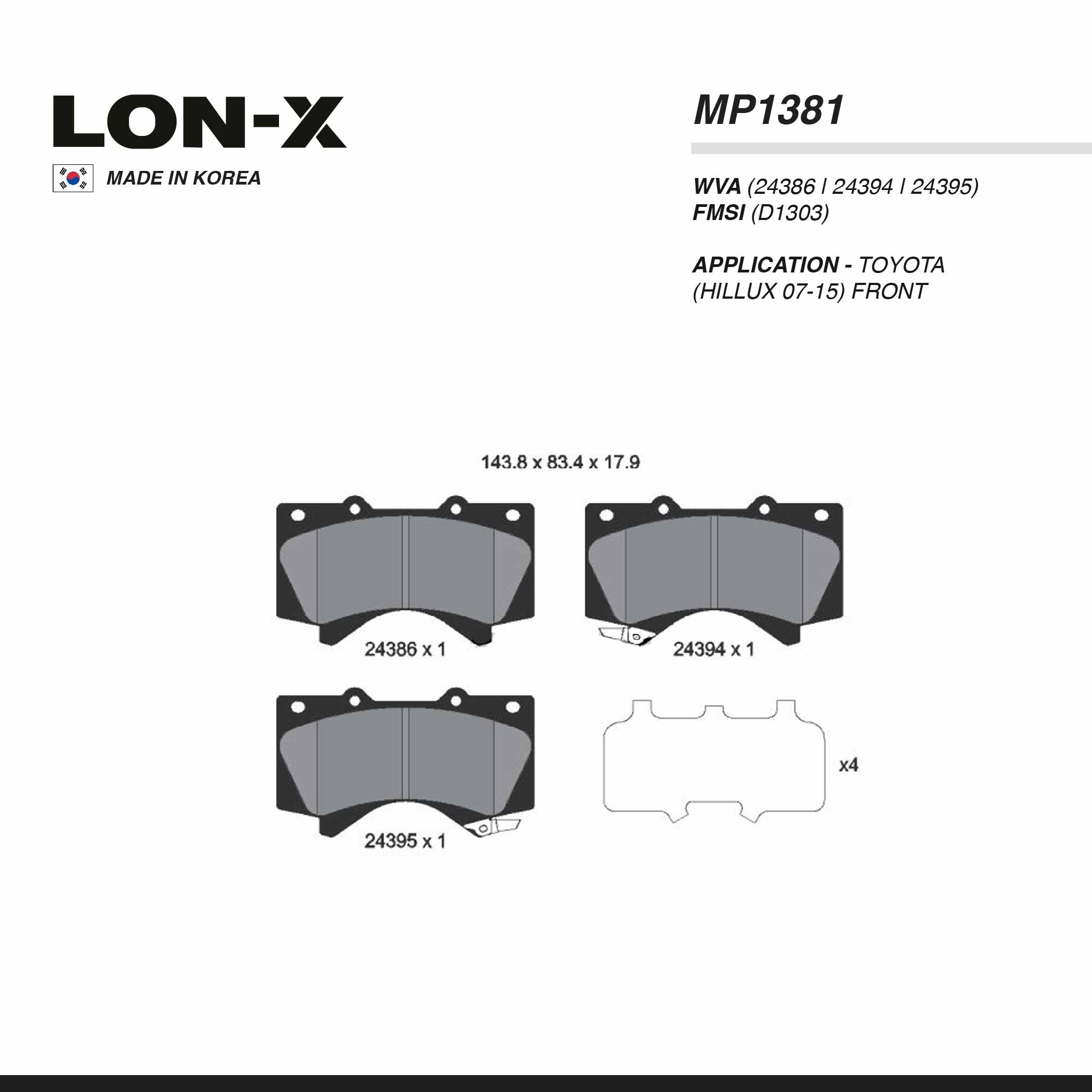 LON-X PAD| MP1381 MITSUBISHI(PAJERO>11) TOYOTA(LAND CRUISER>08) FRT