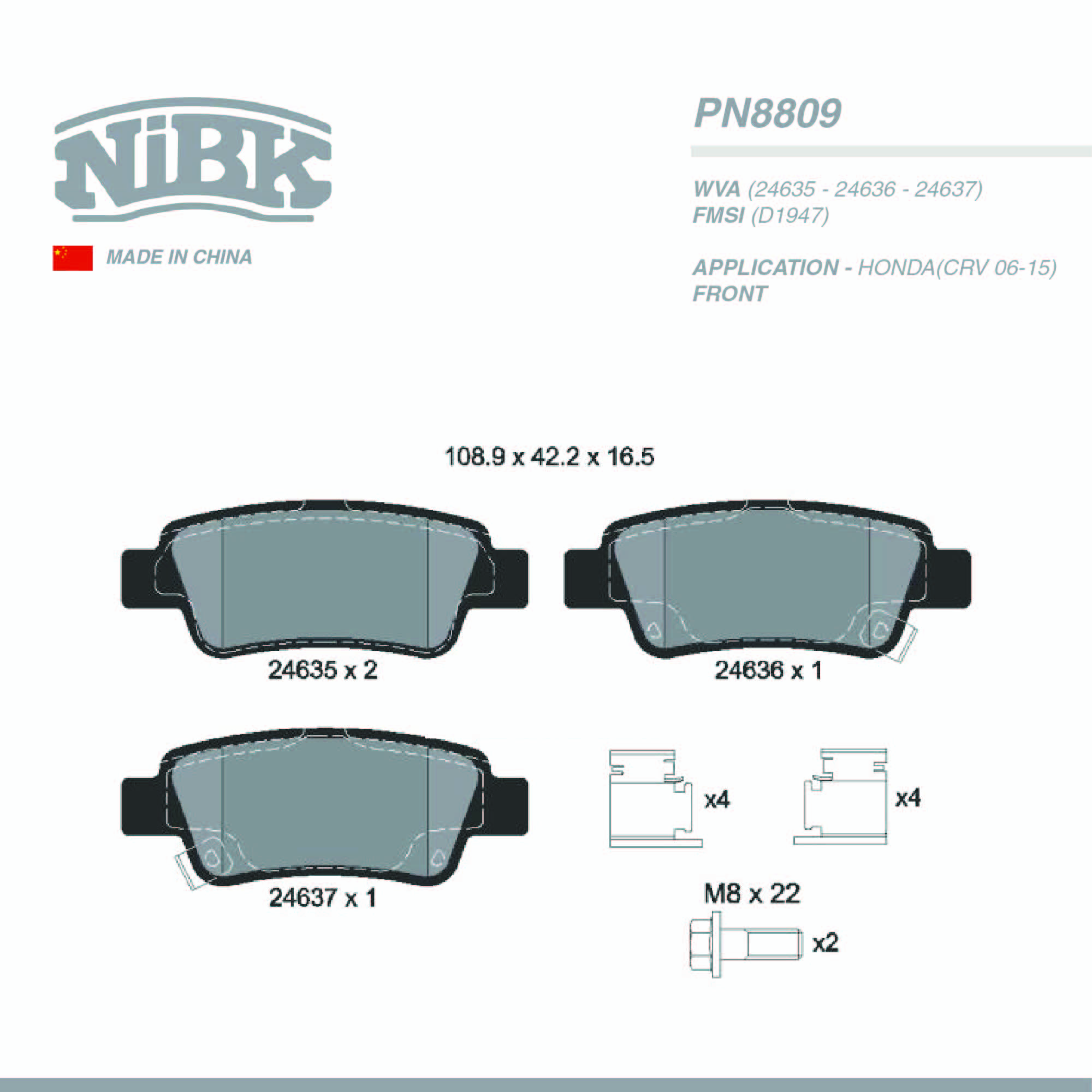 NIBK PAD| PN8809 HONDA(CRV 06-15) FRT