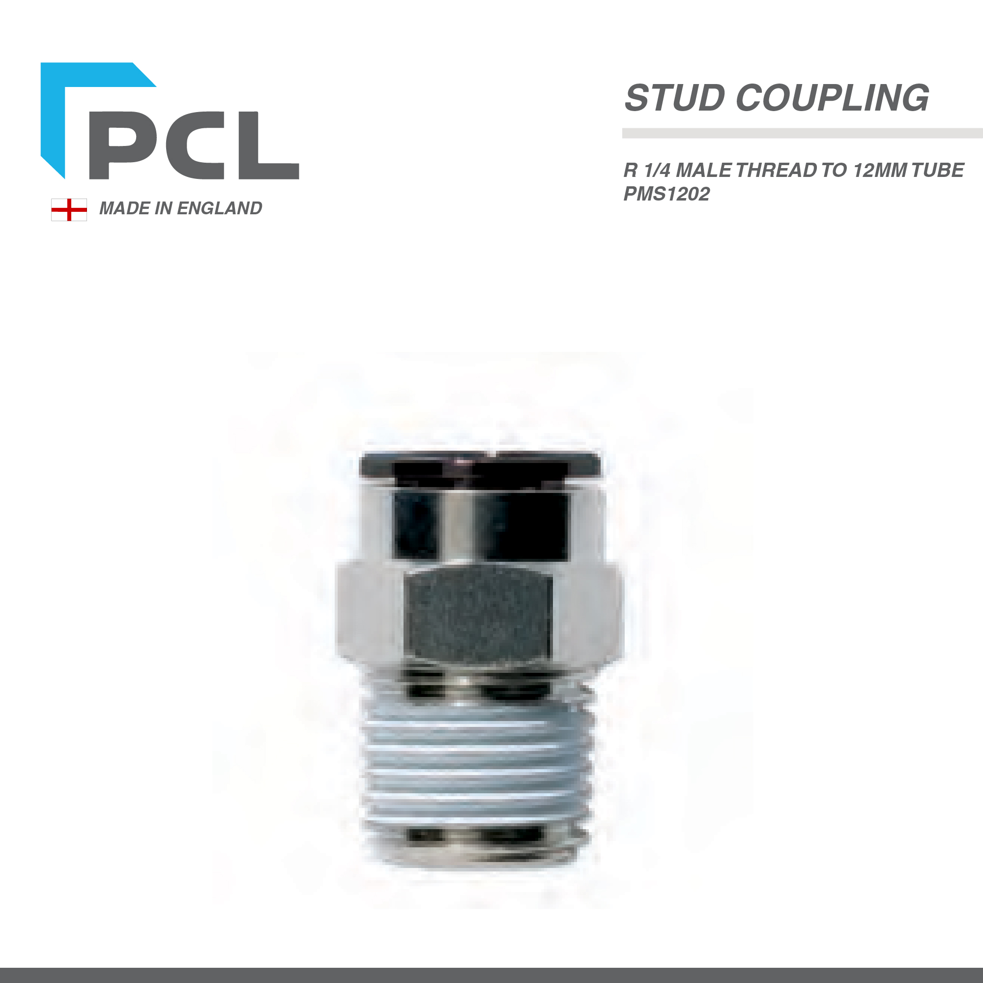 PCL STUD COUPLING R 1/4 MALE THREAD TO 12mm TUBE PMS1202
