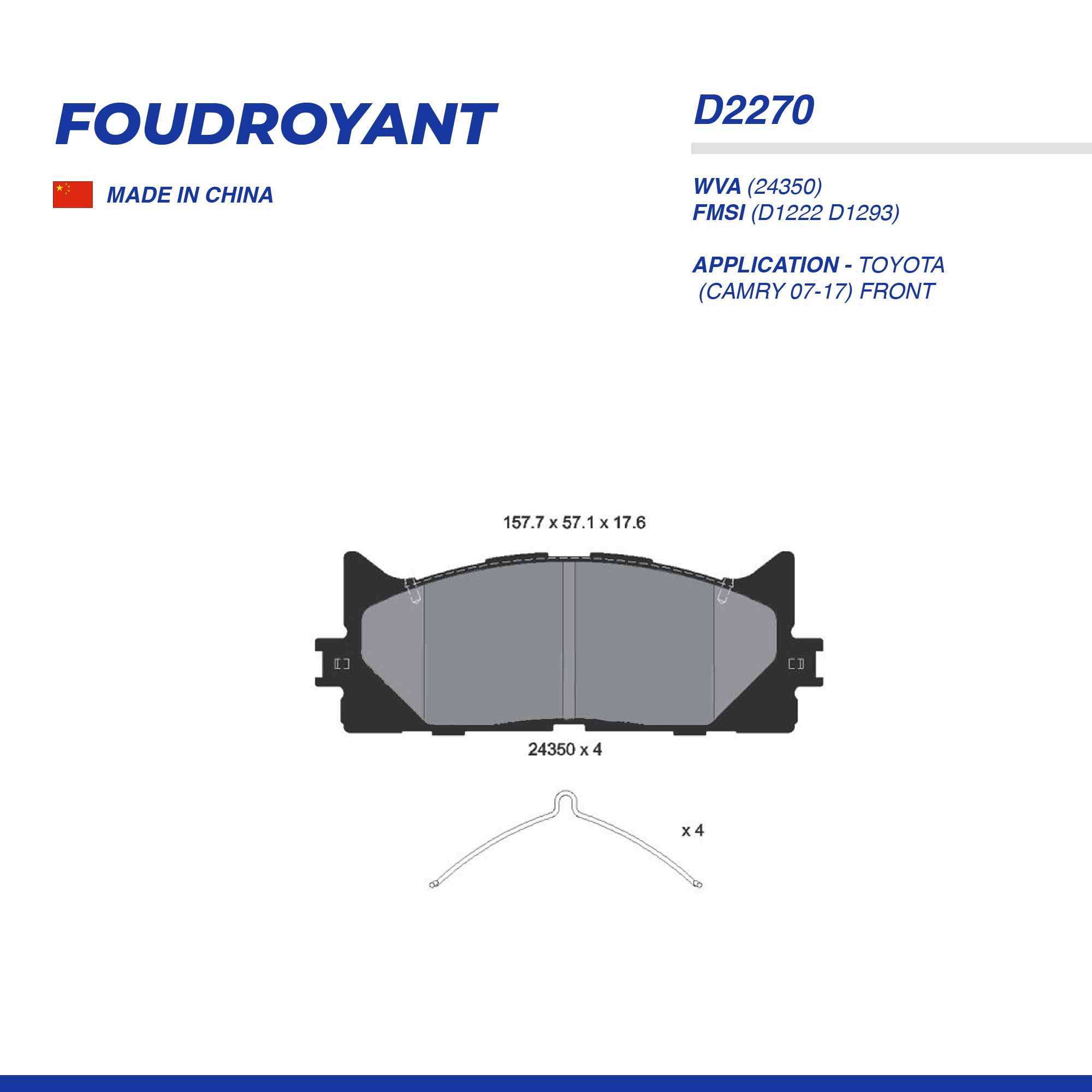 PRO PAD| D2270 TOYOTA (CAMRY 07-17) FRT