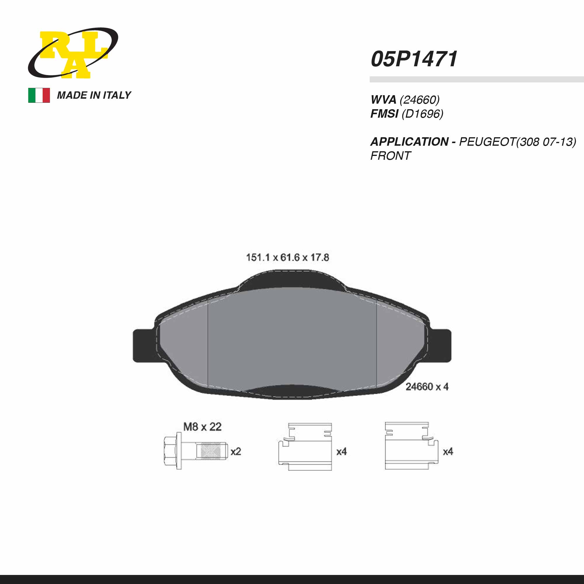 RAL PAD| 05P1471 PEUGEOT(308 07-13) FRT