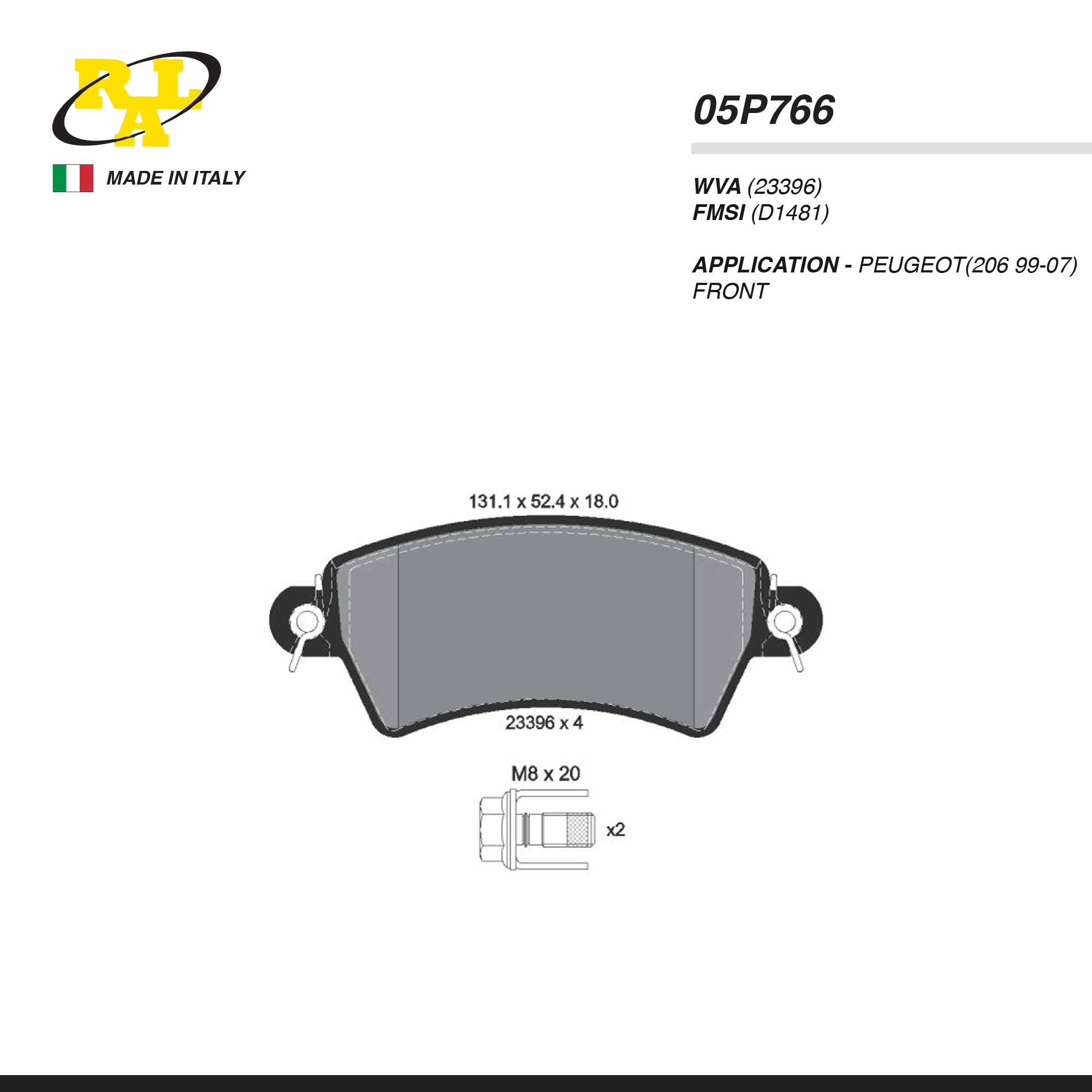 RAL PAD| 05P766 PEUGEOT(206 99-07) FRT