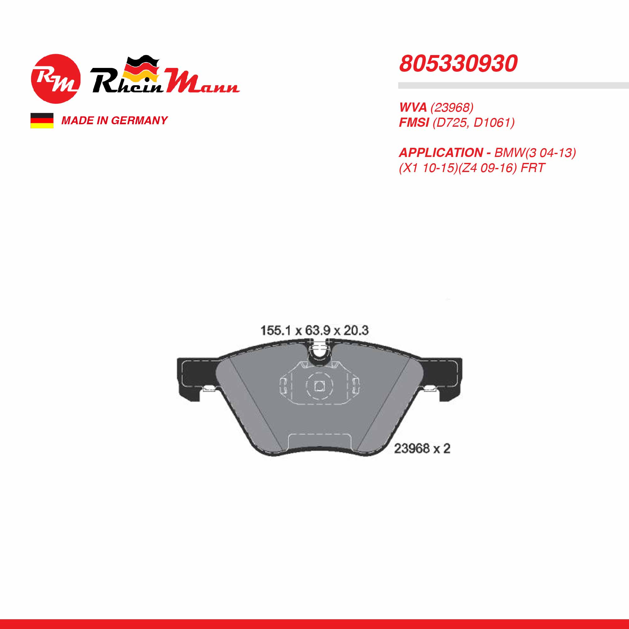 RHEIN MANN PAD| 805330930 BMW(3 04-13)(X1 10-15)(Z4 09-16) FRT