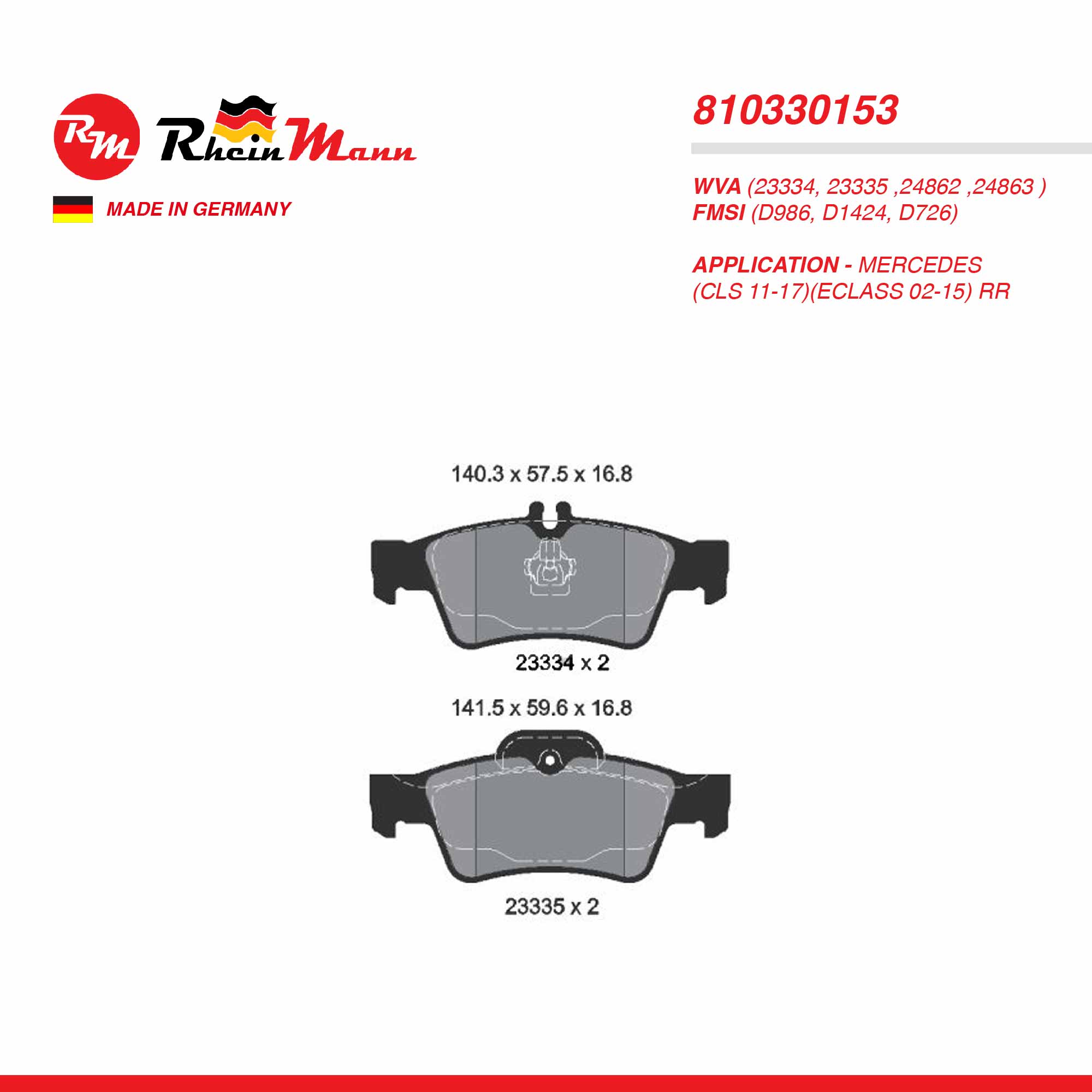 RHEIN MANN PAD| 810330153 MERCEDES(CLS 11-17)(ECLASS 02-15) RR