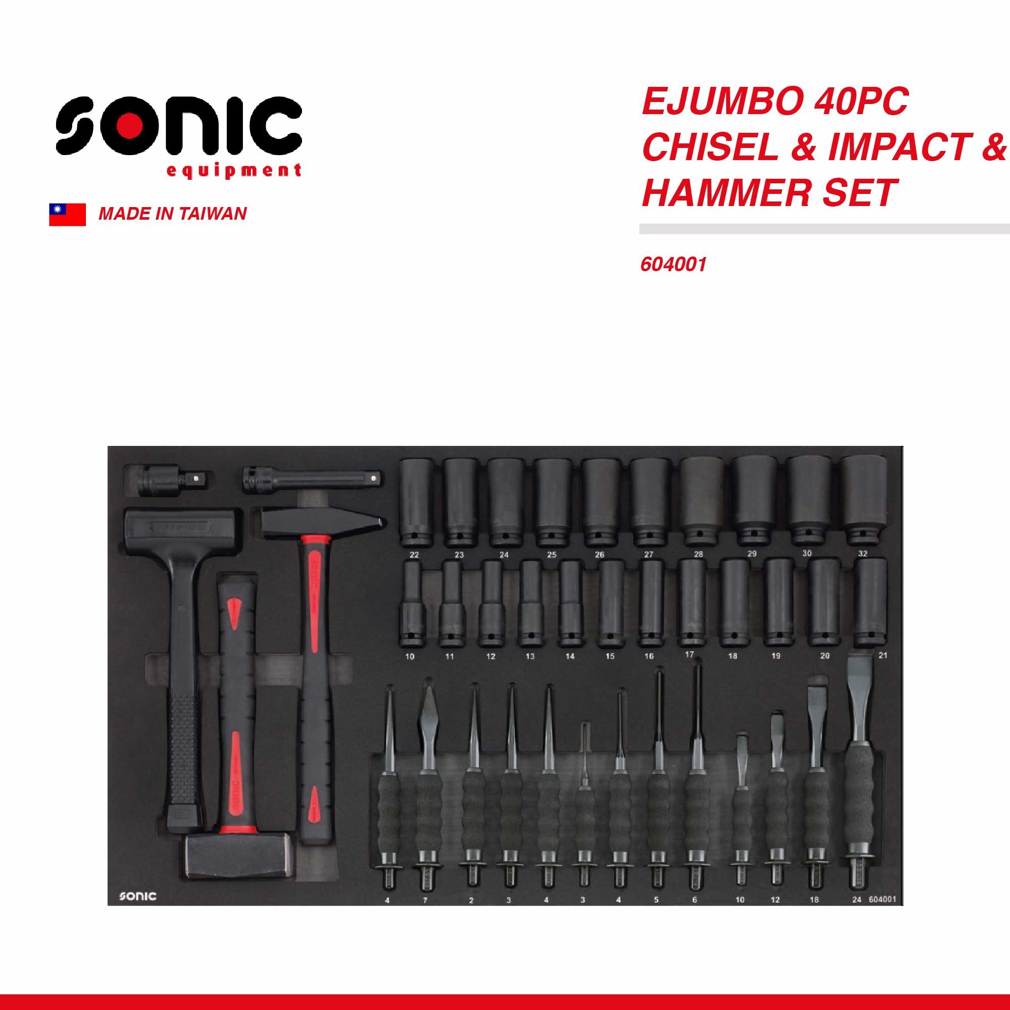 SONIC EJUMBO 40PC CHISEL & IMPACT & HAMMER SET – 604001