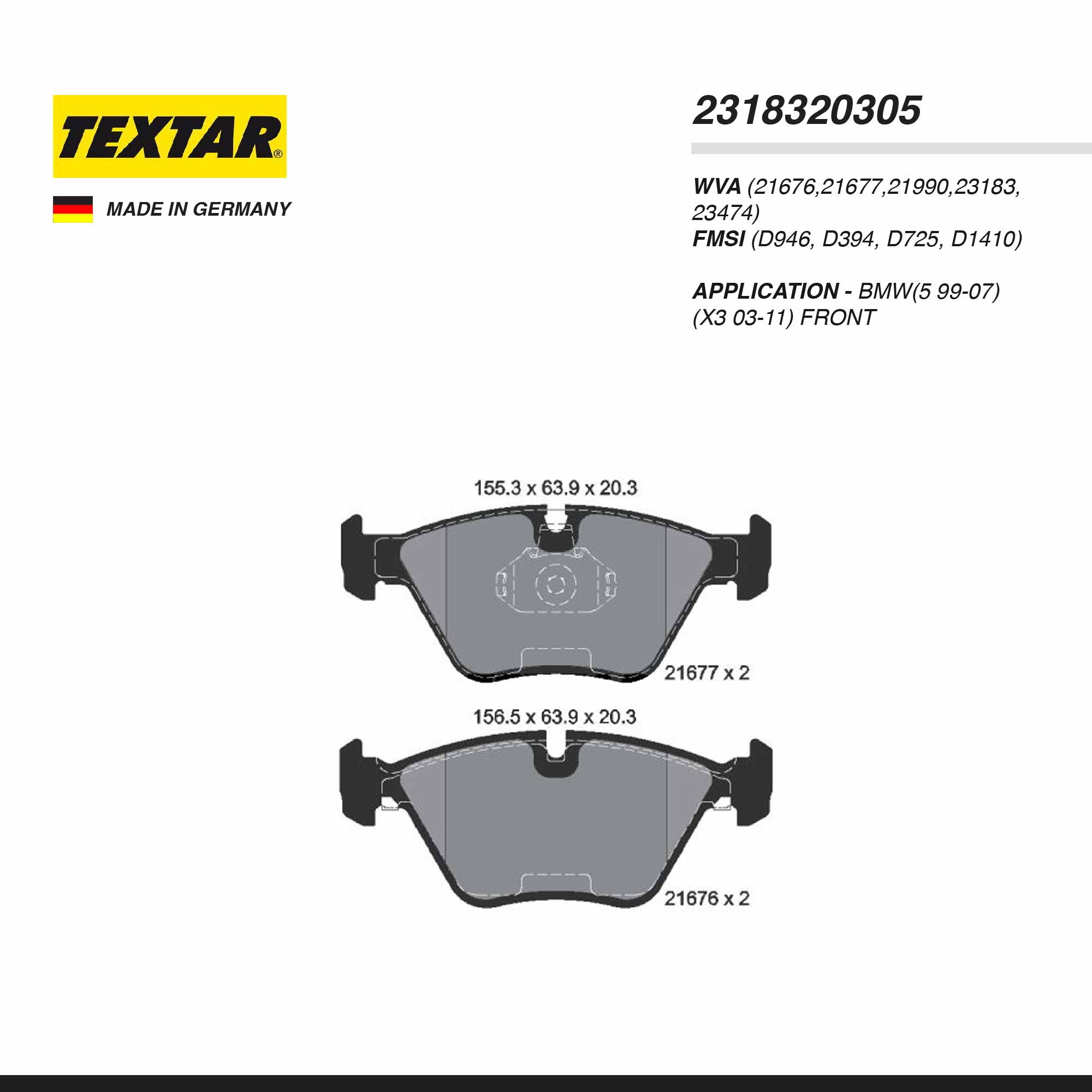 TEXTAR PAD| 2318320305 BMW(5 99-07)(X3 03-11) FRT