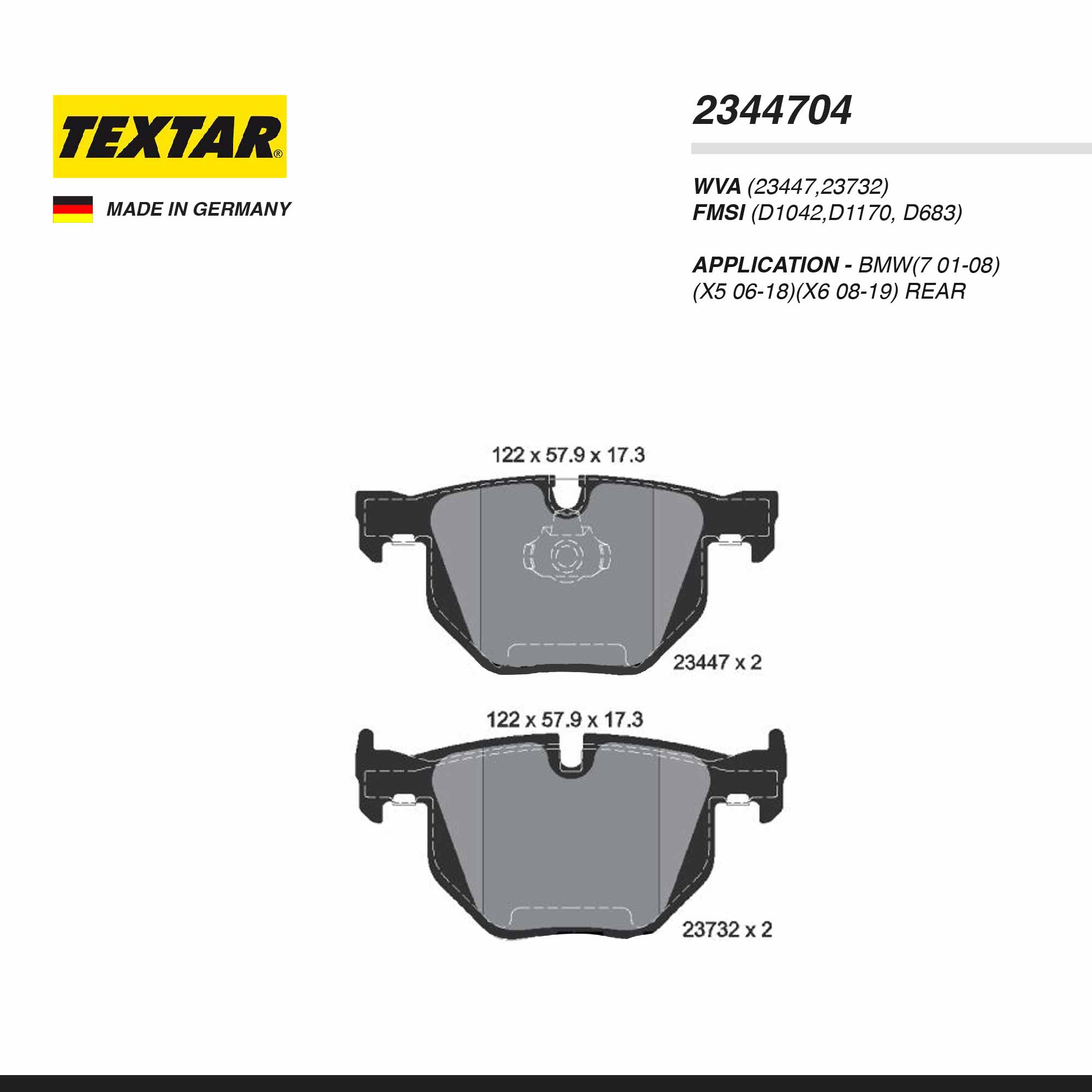 TEXTAR PAD| 2344704 BMW(7 01-08)(X5 06-18)(X6 08-19) RR