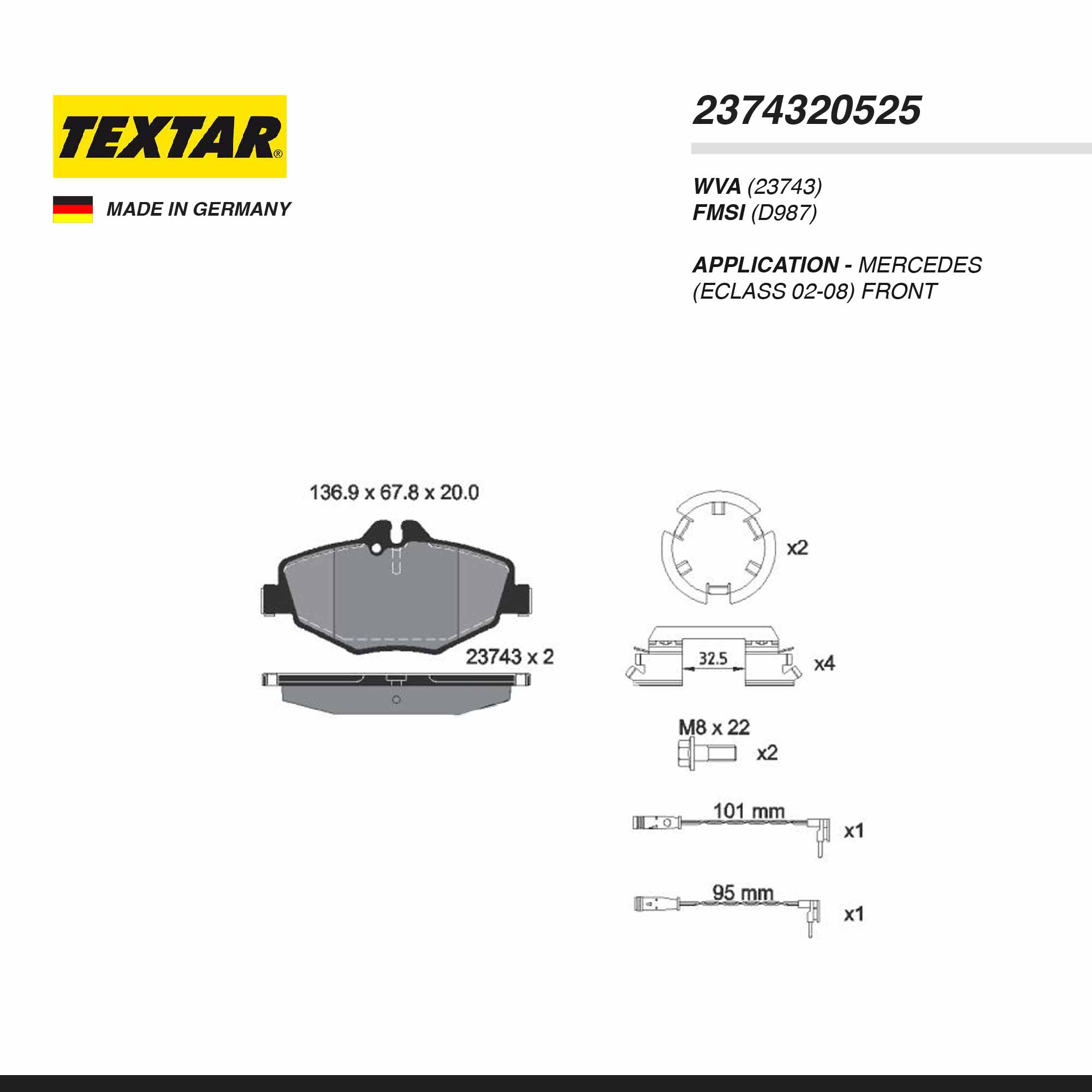 TEXTAR PAD| 2374320525 MERCEDES(ECLASS 02-08) FRT
