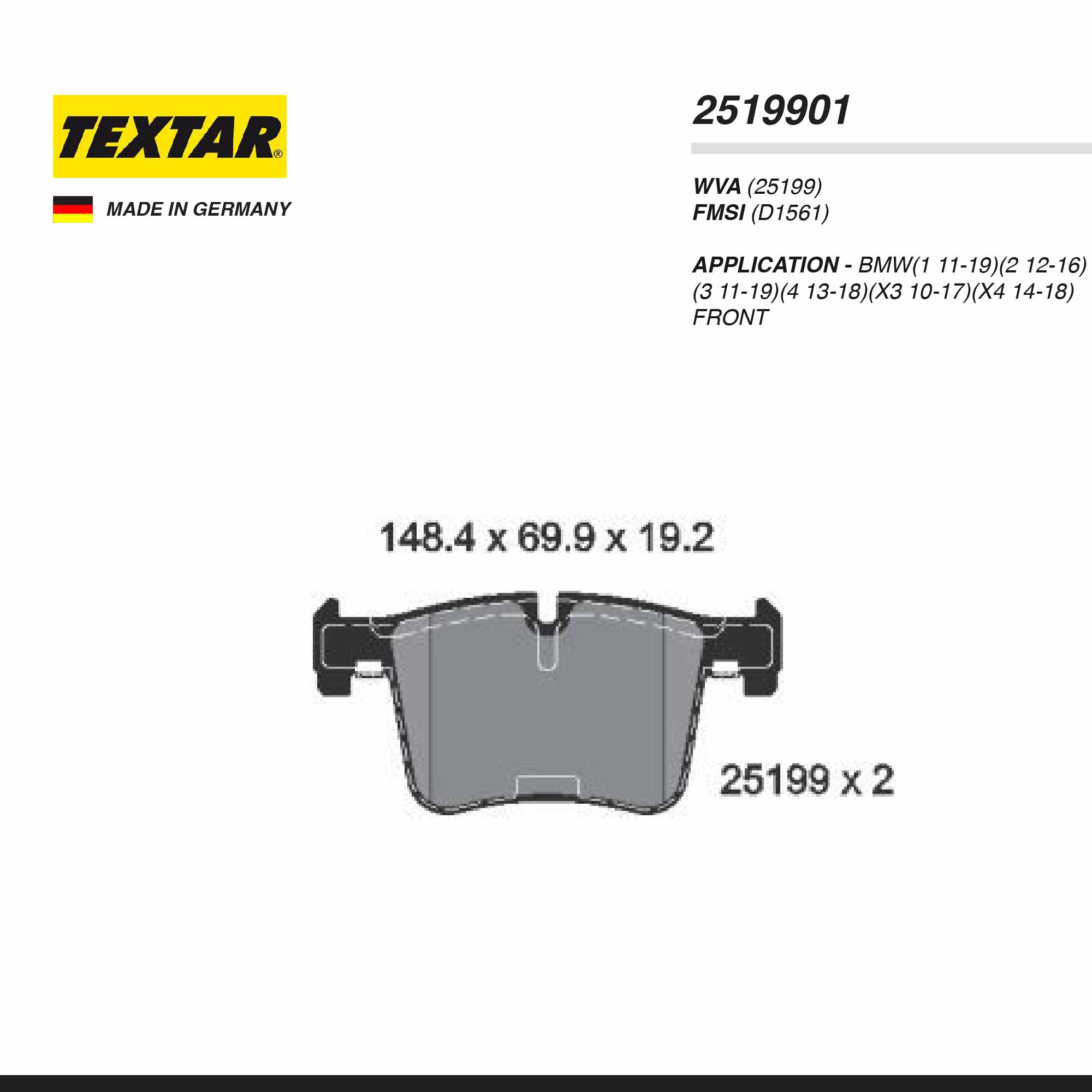 TEXTAR PAD| 2519901 BMW(1 11-19)(2 12-16)(3 11-19)(4 13-18)(X3 10-17)(X4 14-18) FRT