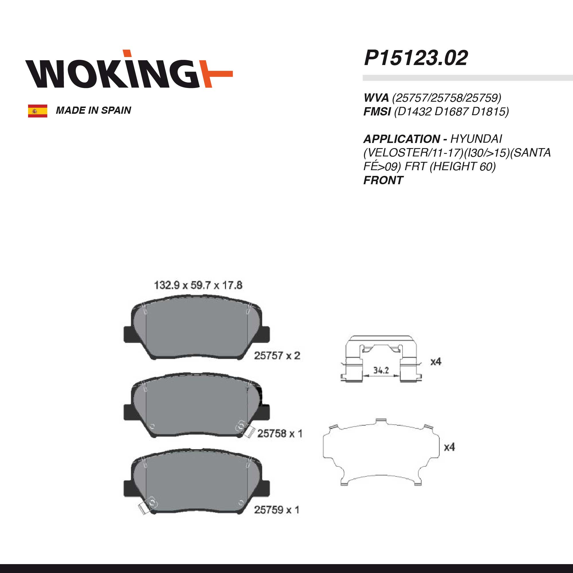WOKING PAD| P15123.02 HYUNDAI (VELOSTER/11-17)(I30/>15)(SANTA FÉ>09) FRT (HEIGHT 60)